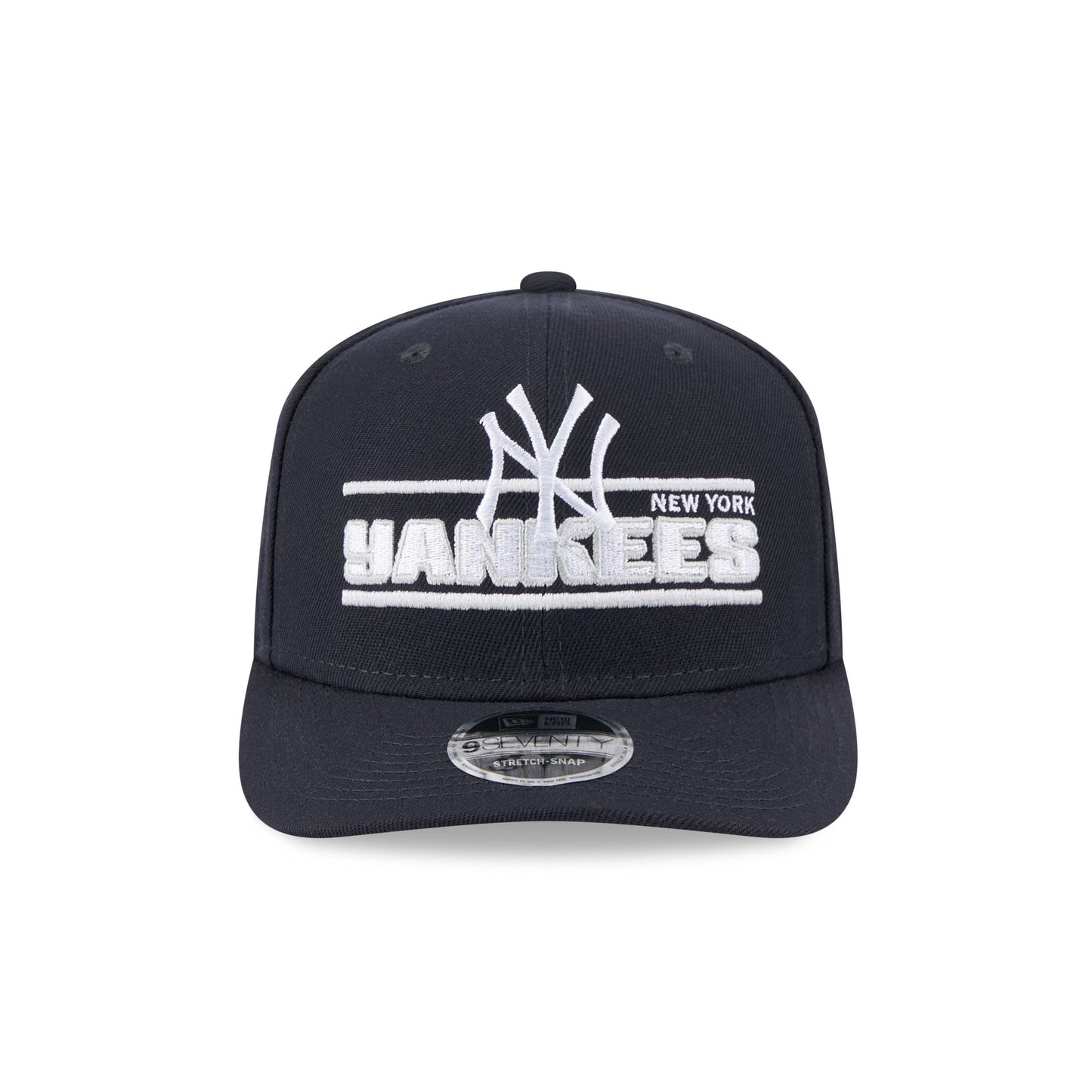 The New York Yankees Stated 9SEVENTY Stretch-Snap features an embroidered Yankees graphic a the front panels with an adjustable stretch-snap closure at the rear and a gray undervisor.