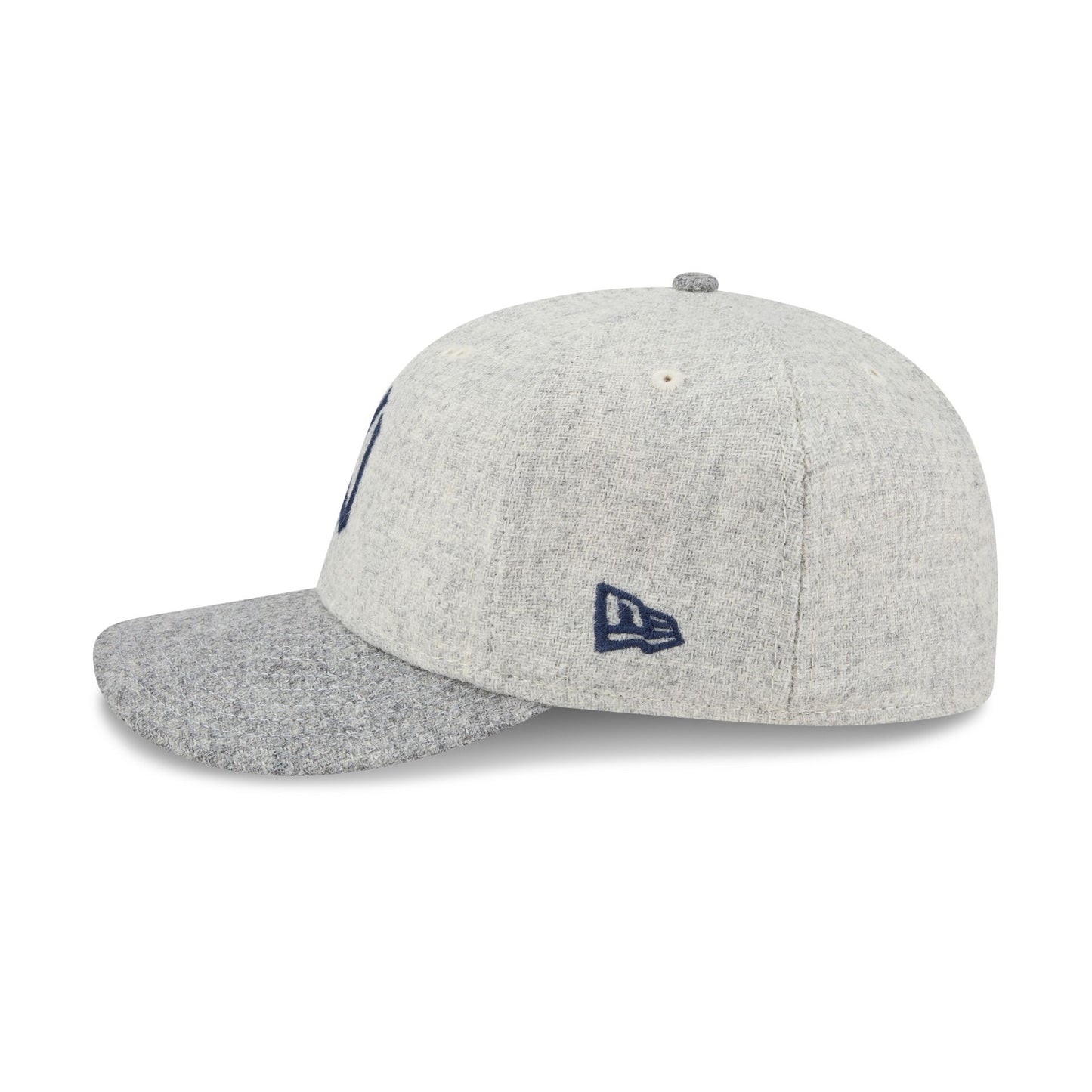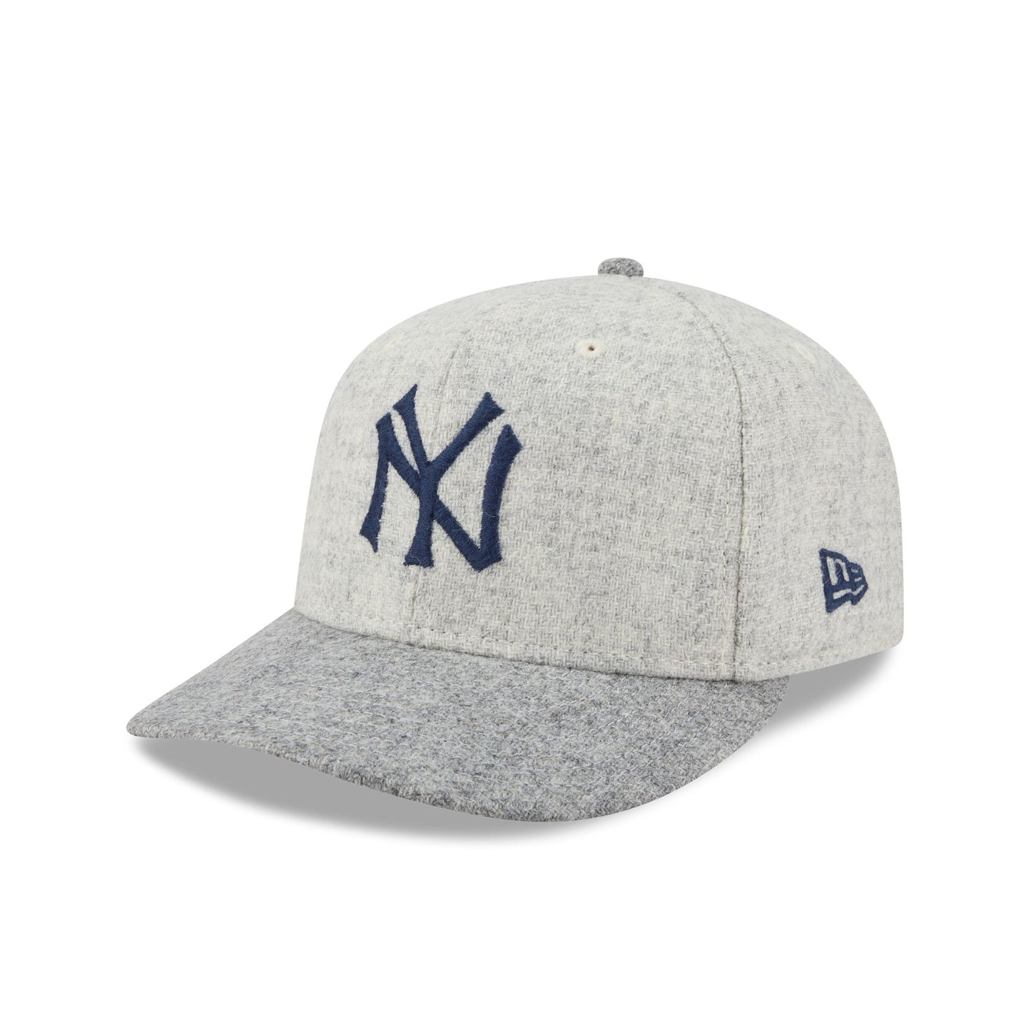 The New York Yankees Stone Shetland Moon 59FIFTY Fitted Cap features an embroidered Yankees Cooperstown logo at the front panels with a Shetland Moon fabrication throughout and a satin Moon tag woven to the right-wear side. Additional details include a team color sweatband and the MLB Batterman logo at the rear and a gray undervisor.