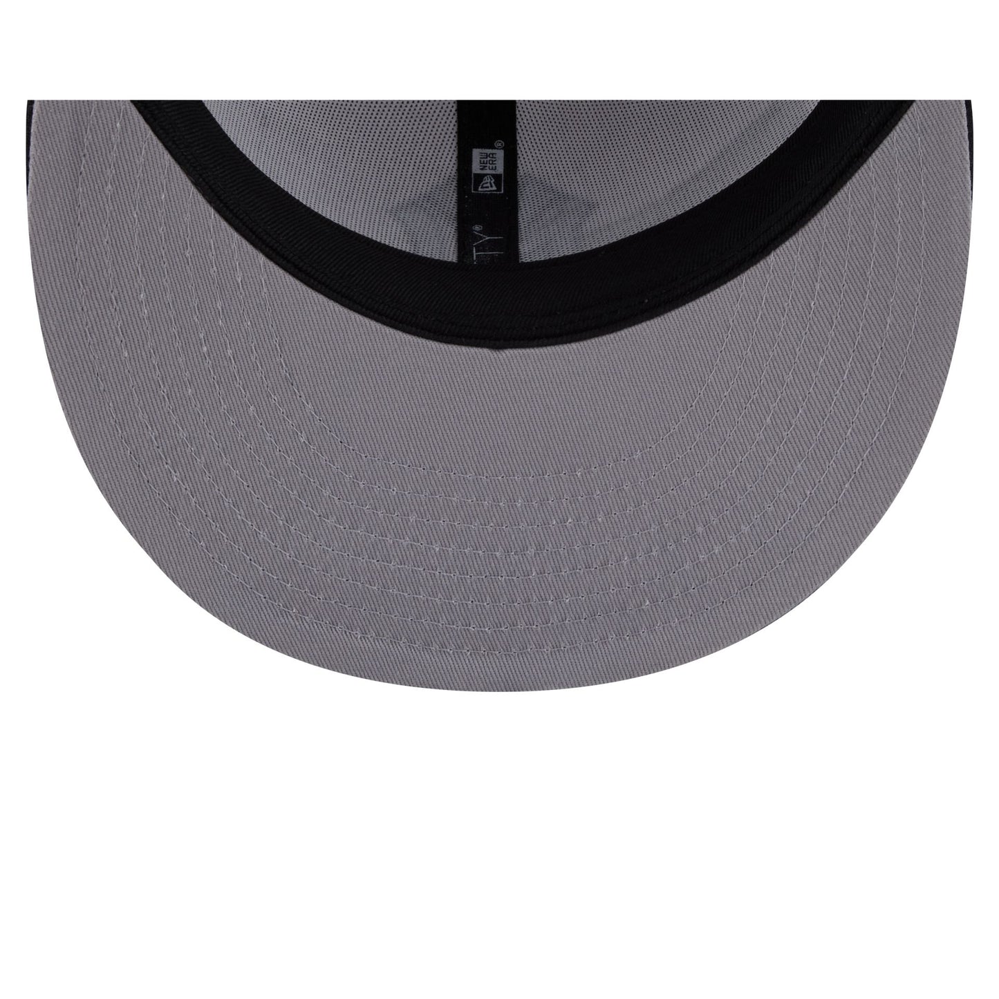 The New York Yankees Swept 9FIFTY Snapback features an embroidered Yankees logo at the front panels with a brushstroke wordmark graphic at the right-wear side. Additional details include an adjustable snapback closure at the rear and a gray undervisor.