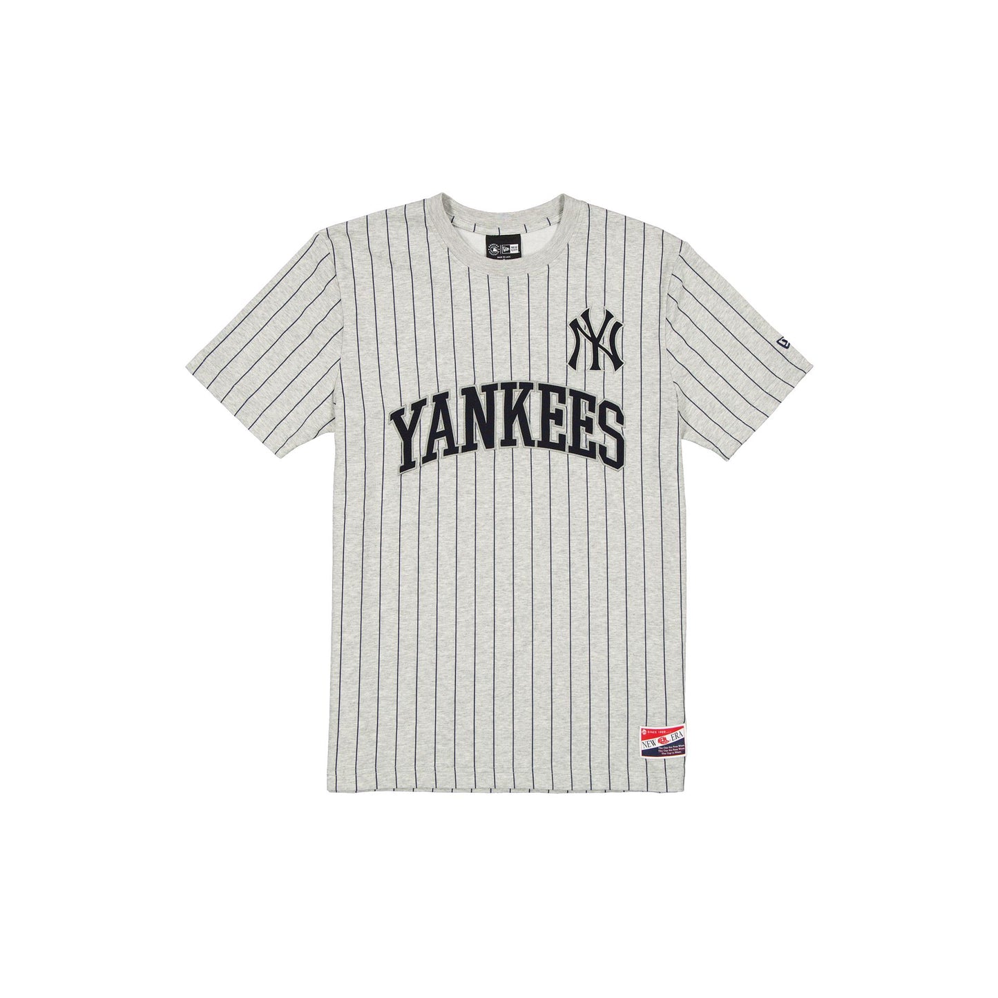 The New York Yankees Throwback Retro Gray Pinstripe T-Shirt features an embroidered Yankees wordmark at the front with a twill applique logo at the left chest.