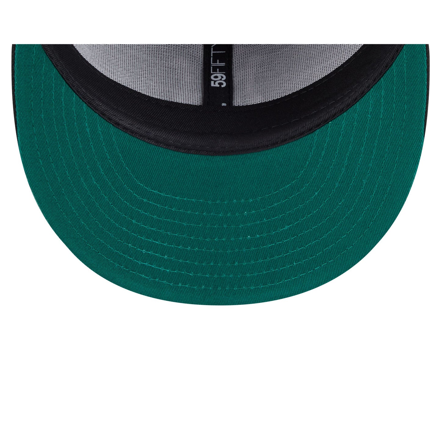 The New York Yankees Tonal Florals Black Pre-Curved 59FIFTY Fitted Cap features an embroidered Yankees logo at the front panels with a team color visor and a green undervisor. Additional details include chainstitched embroidered flowers with handstitched beading at the left-wear side and a matching MLB Batterman logo at the rear.