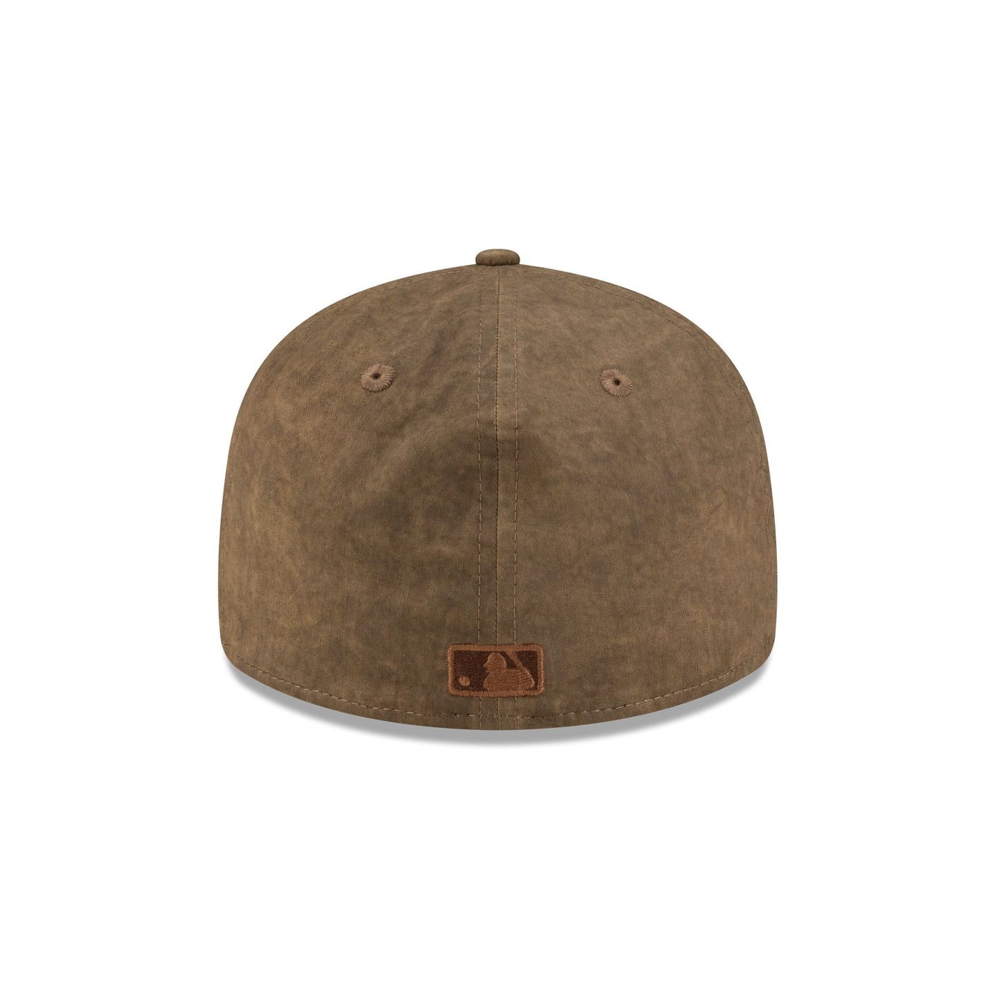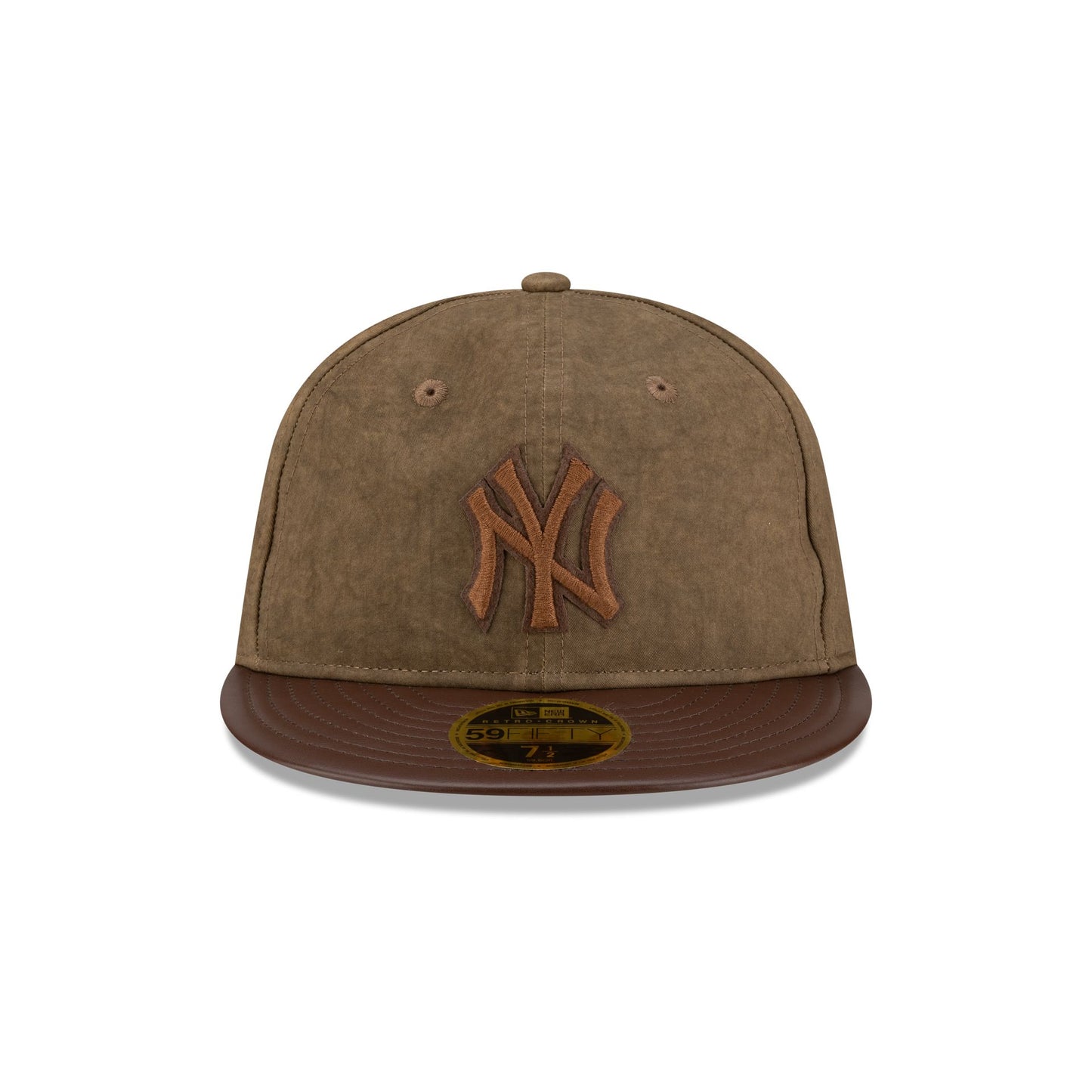 The New York Yankees Utility Linen Retro Crown 59FIFTY Fitted Cap features an embroidered Yankees logo at the front panels with a team patch at the right-wear side. Additional details include a faux leather visor and the MLB Batterman logo at the rear.