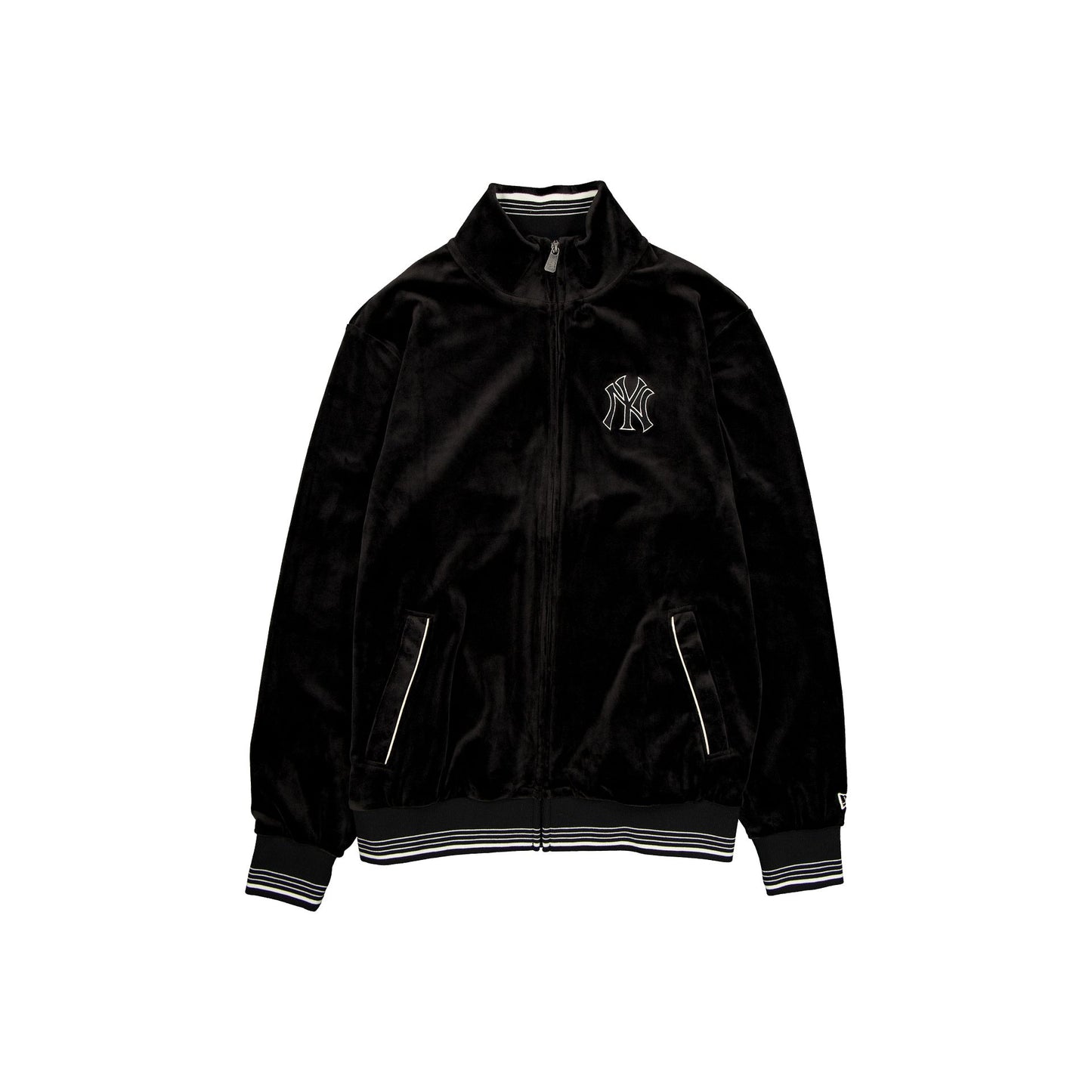 The New York Yankees Velour Track Jacket features an embroidered Yankees logo at the left chest with side pockets and a full zip closure at the front. Additional details include an embroidered New Era Flag at the left wrist and striped details at the cuffs.