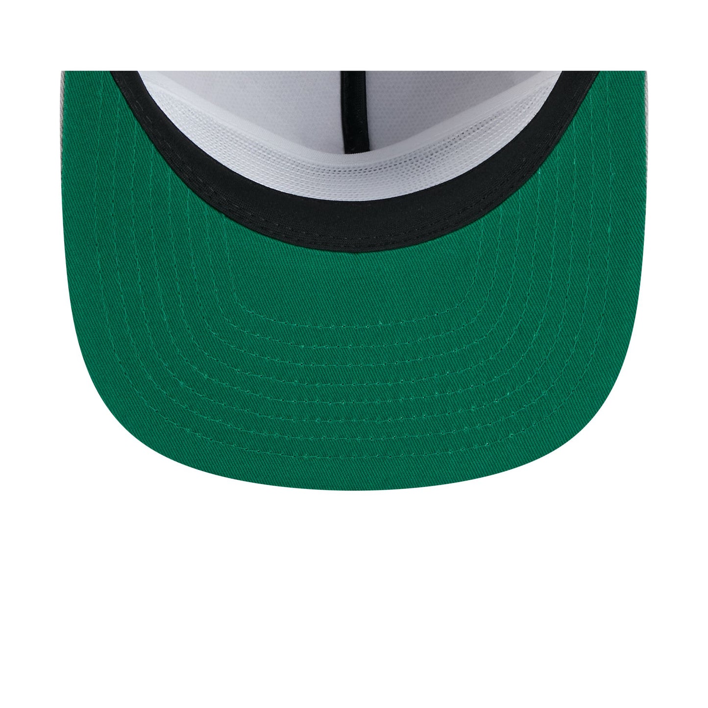 The New York Yankees Vintage Gray Golfer features an embroidered "PROPERTY OF" Yankees wordmark at the front panels with a team logo at the right-wear side and a rope at the visor. Additional details include a snapback closure at the rear and a green undervisor.