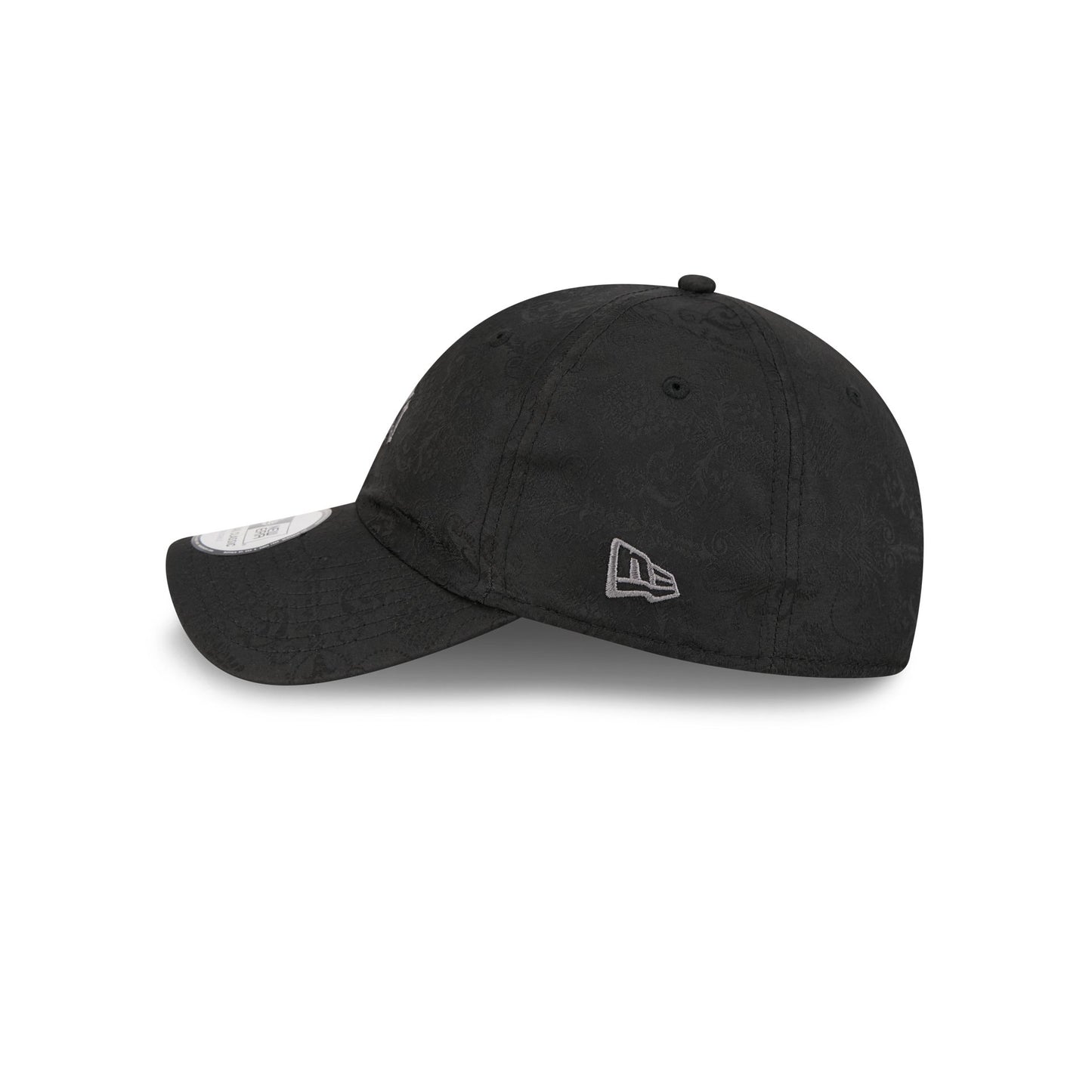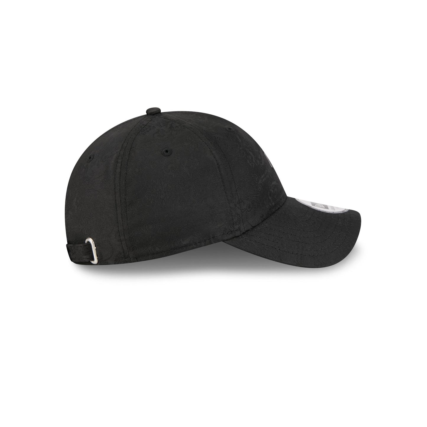 The New York Yankees Vintage Satin Black Casual Classic Adjustable Cap features an embroidered Yankees mini logo at the front panels with a floral satin fabrication throughout and an adjustable D-Ring closure at the rear.