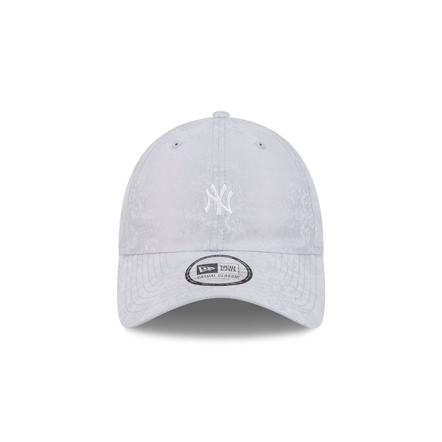 The New York Yankees Vintage Satin Gray Casual Classic Adjustable Cap features an embroidered Yankees mini logo at the front panels with a floral satin fabrication throughout and an adjustable D-Ring closure at the rear.