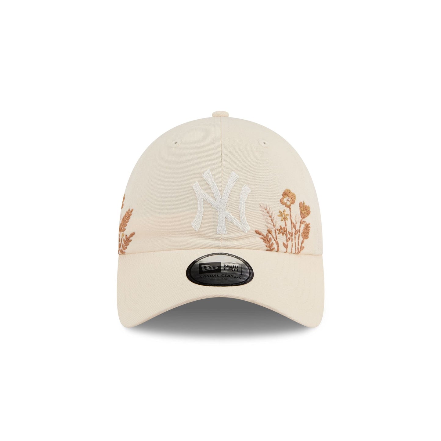 The New York Yankees Wildflower Light Cream Casual Classic Adjustable Cap features an embroidered Yankees logo at the front panels with embroidered wildflowers at each side and at the undervisor. Additional details include an adjustable D-Ring closure at the rear.