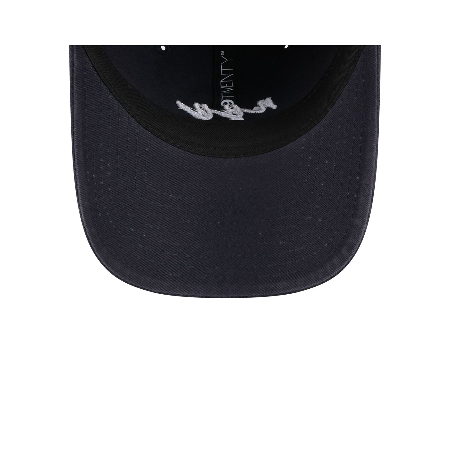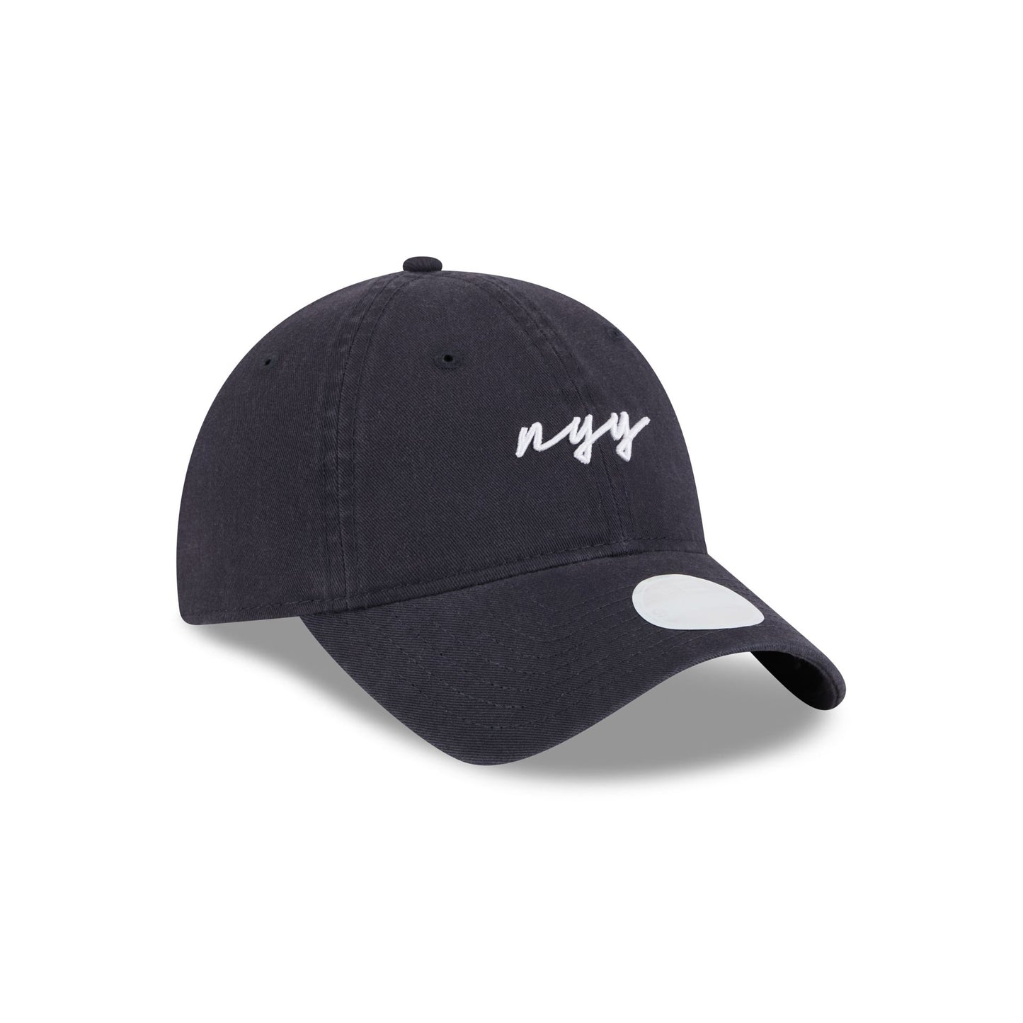 The New York Yankees Women's Script 9TWENTY Adjustable Cap features an embroidered Yankees script at the front panels with a team tag on an adjustable D-Ring closure at the rear.