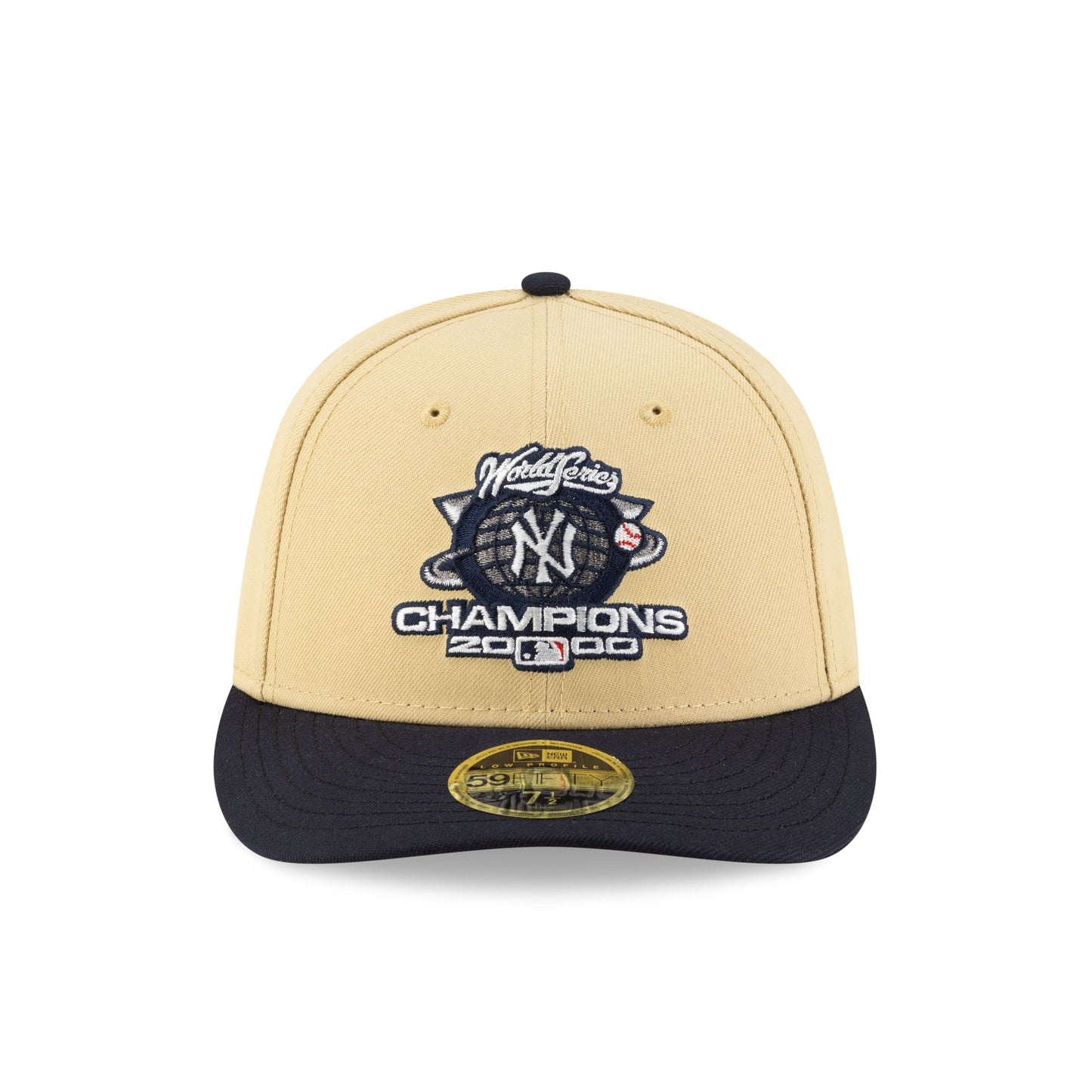 The New York Yankees World Series Low Profile 59FIFTY Fitted Cap features an embroidered Yankees 2000 World Series Champions logo at the front panels with a matching MLB Batterman logo at the rear and a gray undervisor.
