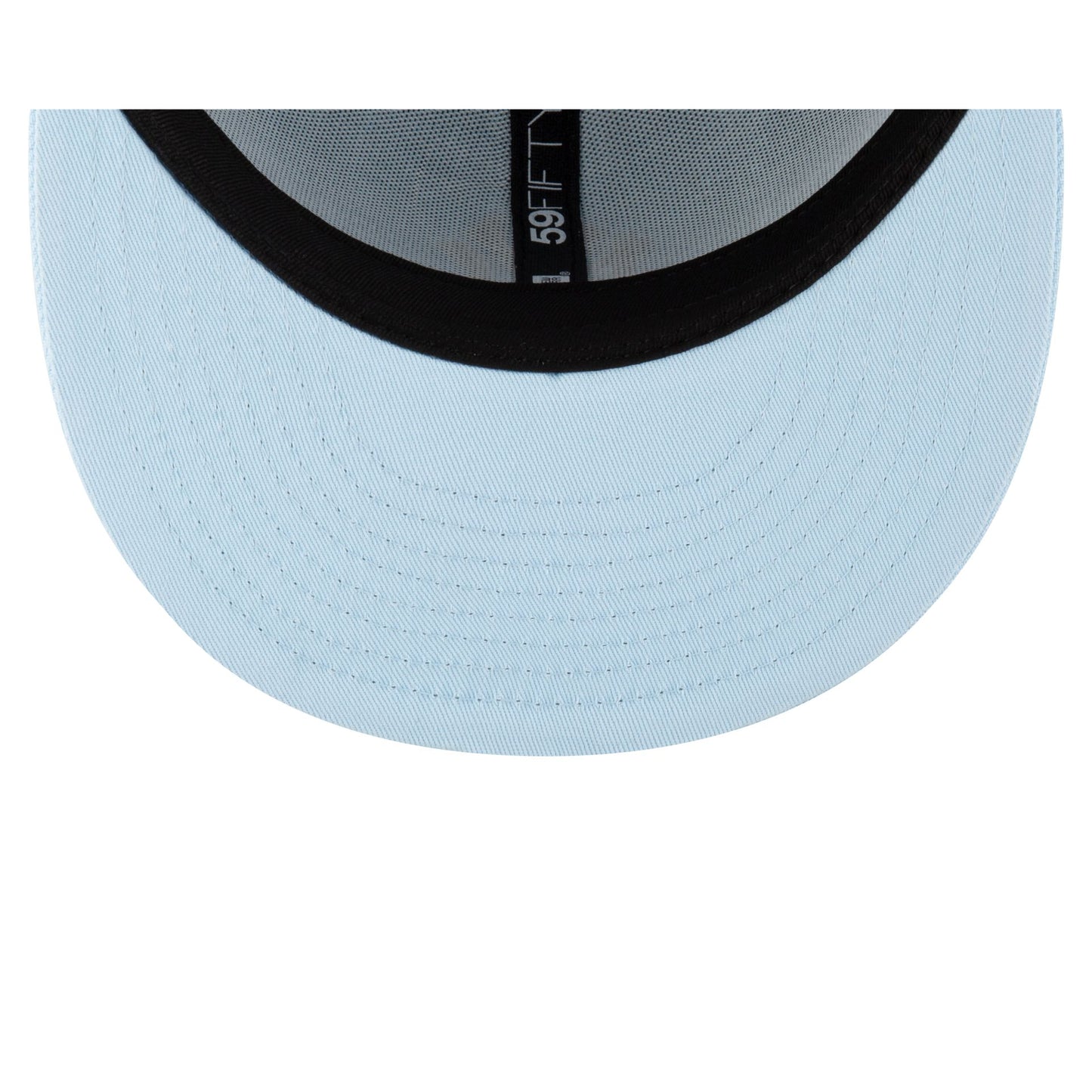The New York or Nowhere x New York Yankees Blue Logo 59FIFTY Fitted Cap features an embroidered Yankees logo at the front panels with the official MLB Batterman logo at the rear. Additional details include a New York or Nowhere wordmark at the right-wear side and a blue undervisor.