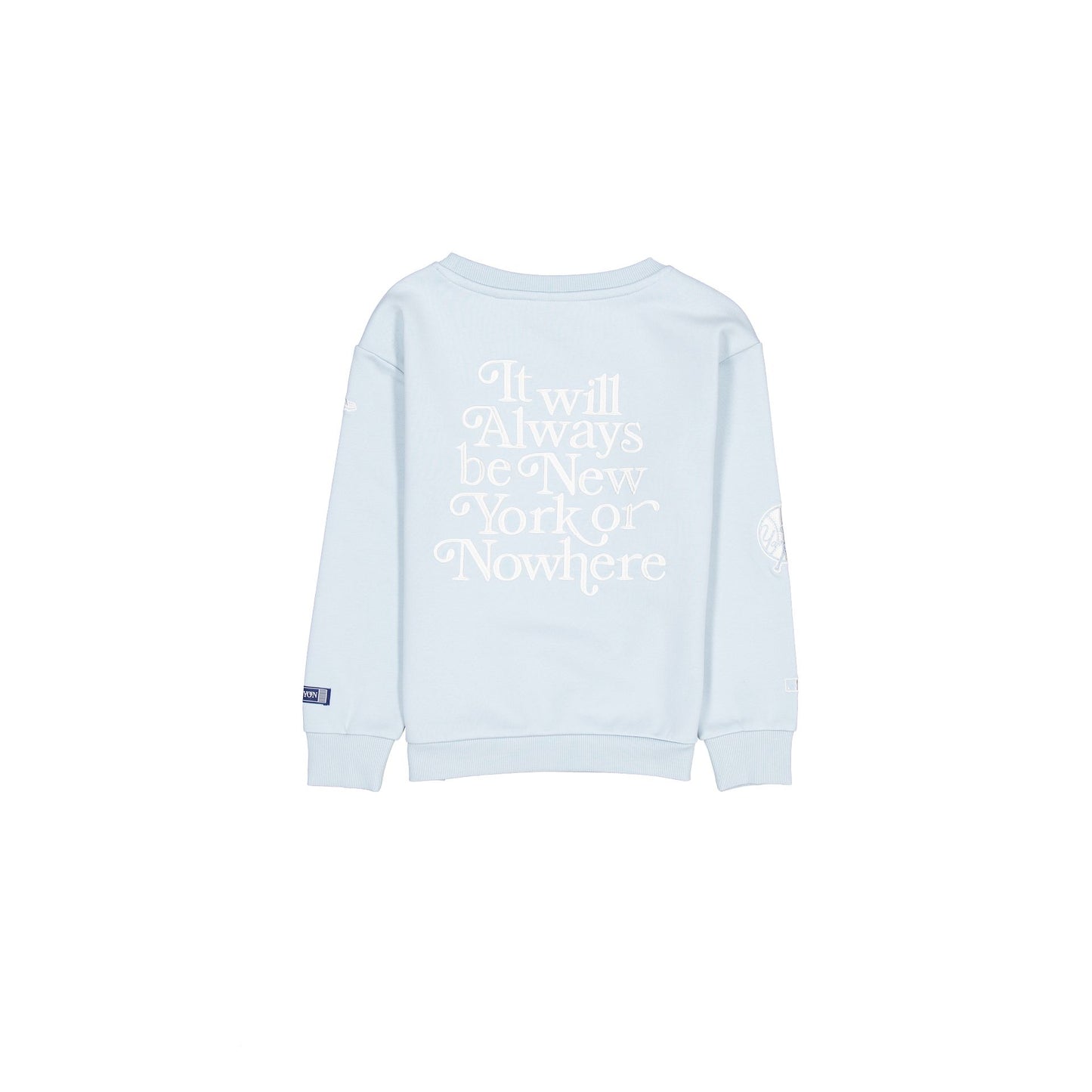The New York or Nowhere x New York Yankees Blue Youth Crewneck features an embroidered New York or Nowhere wordmark at the front with an It Will Always Be New York Or Nowhere wordmark at the rear. Additional details include a Yankees patch and MLB Batterman logo at the right sleeve with a woven Yankees x NYON tag at the left wrist.