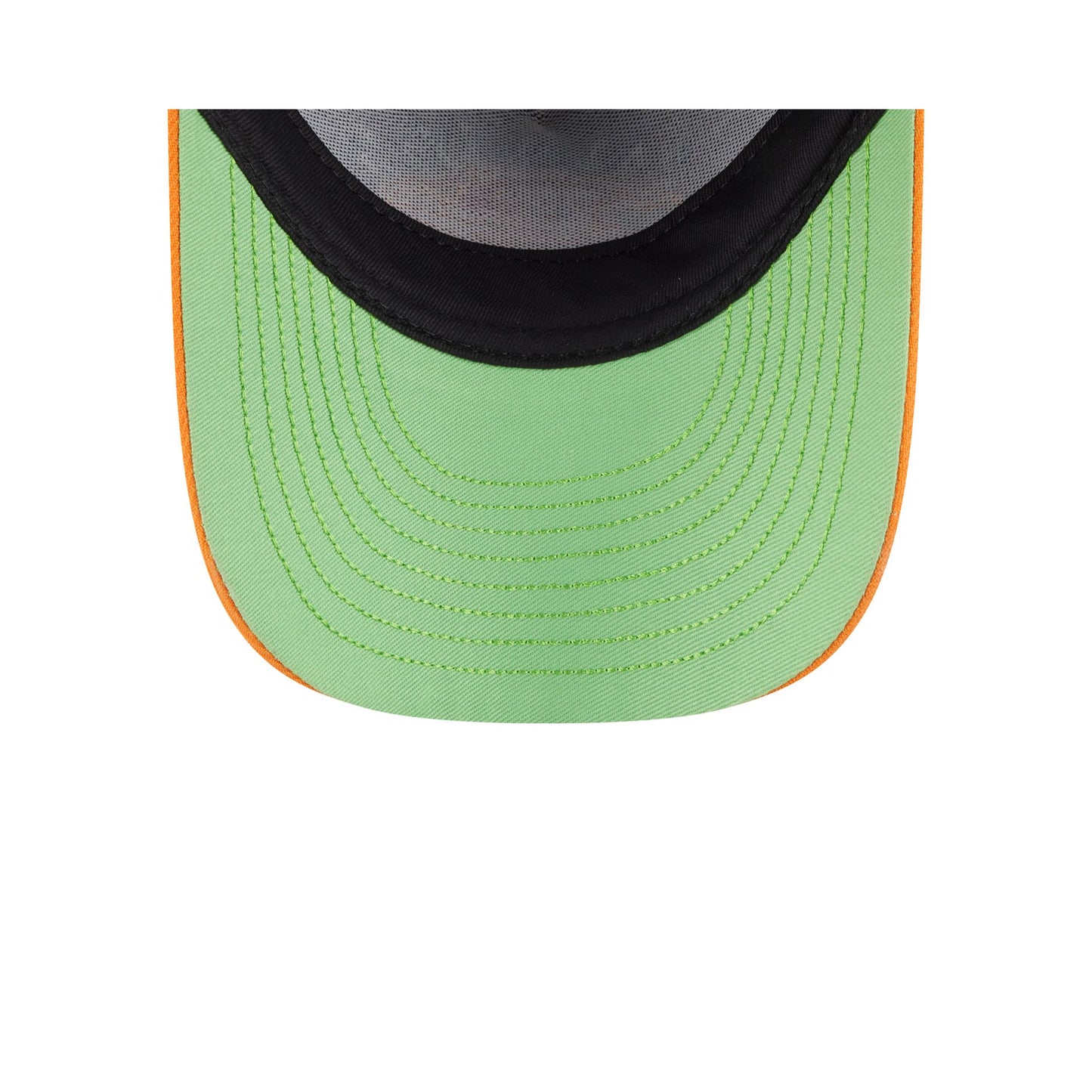 The Nickelodeon Slime x Baltimore Ravens Kids 9FORTY A-Frame Snapback features an embroidered Ravens slime logo at the front panels with a slime splash on an orange visor. Additional details include an adjustable snapback closure at the rear and a neon green undervisor.