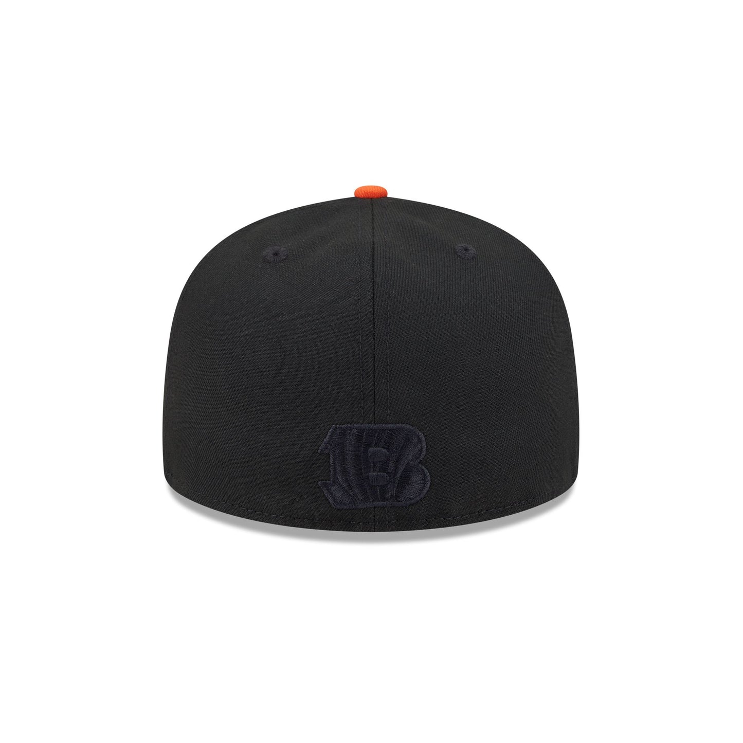 The Nickelodeon Slime x Cincinnati Bengals 59FIFTY Fitted Cap features an embroidered Bengals slime logo at the front panels with a monochromatic black logo at the rear and a gray undervisor.