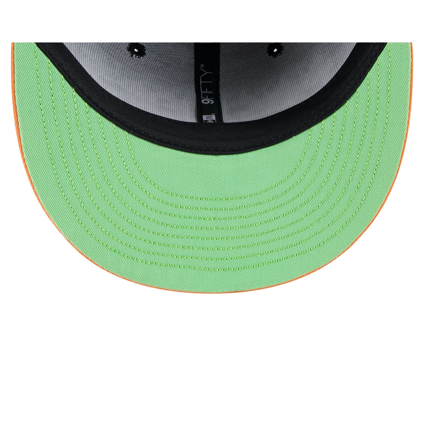 The Nickelodeon Slime x Green Bay Packers 9FIFTY Snapback features an embroidered Packers slime logo at the front panels with a slime splash on an orange visor. Additional details include an adjustable snapback closure at the rear and a neon green undervisor.