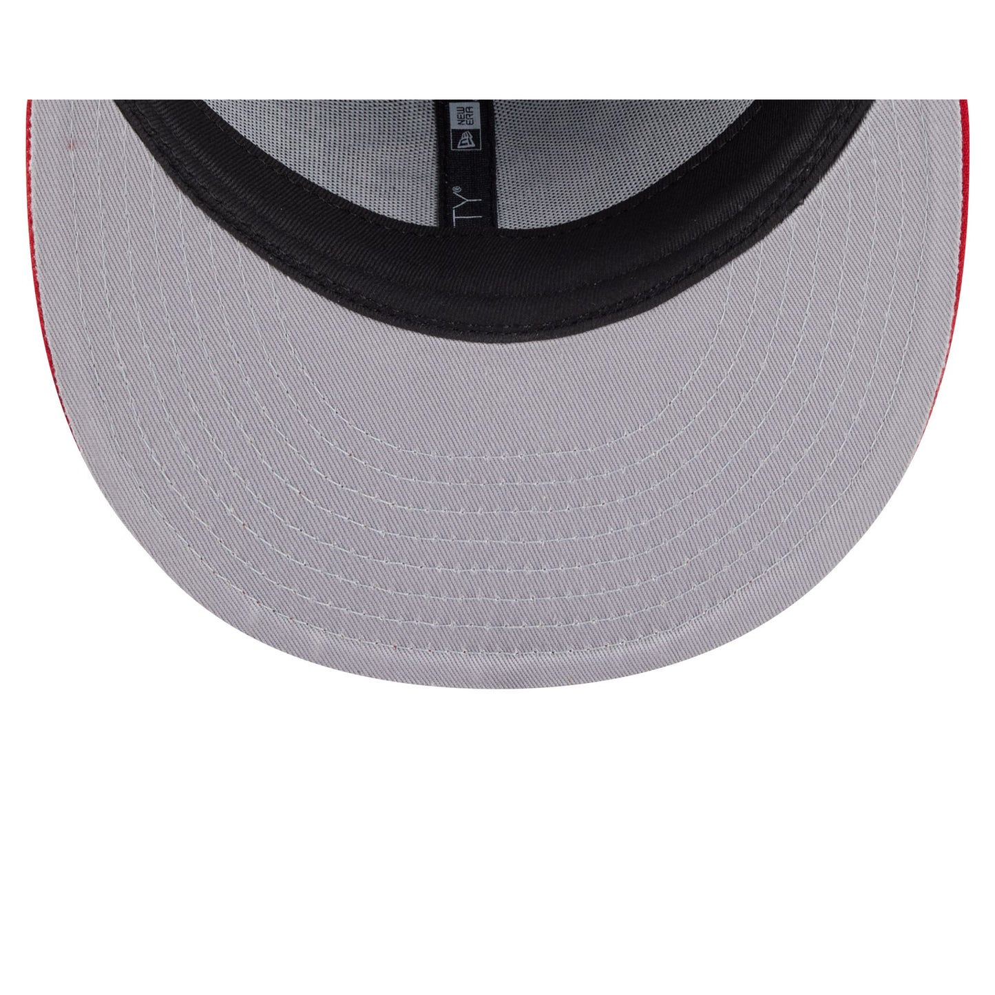 The Nickelodeon Slime x San Francisco 49ers 59FIFTY Fitted Cap features an embroidered 49ers slime logo at the front panels with a monochromatic black logo at the rear and a gray undervisor.