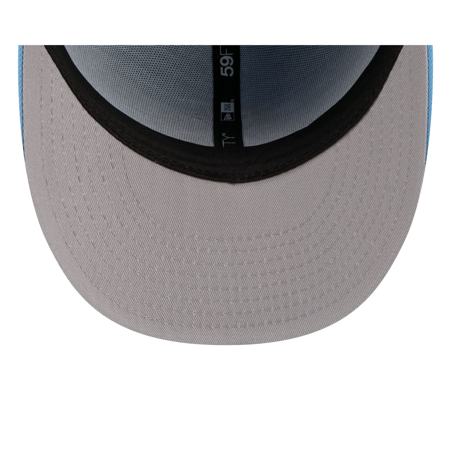 The North Carolina Tar Heels 1993 March Madness College Vault Pre-Curved 59FIFTY Fitted Cap features an embroidered Tar Heels College Vault logo at the front panels with an alternate team logo at the rear, a 1993 NCAA Final Four patch at the right-wear side, and a gray undervisor.