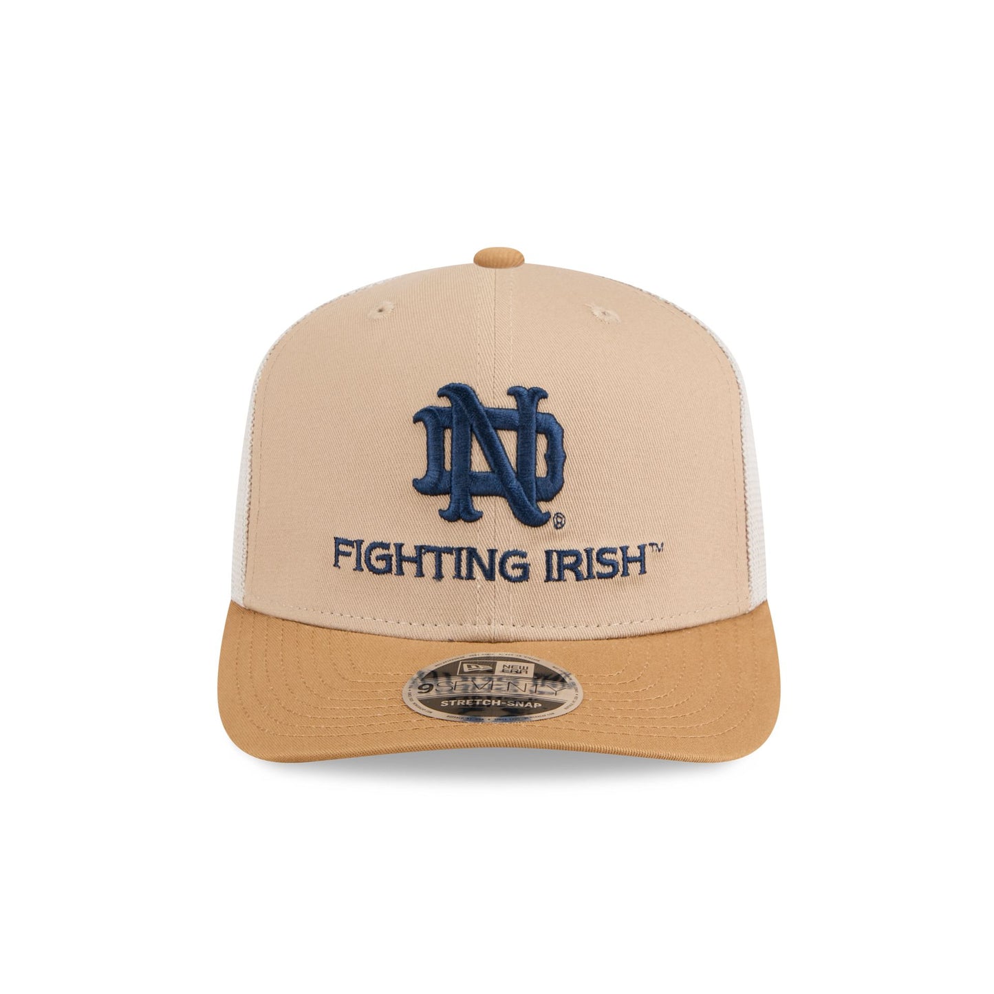 The Notre Dame Fighting Irish College Vault Stone 9SEVENTY Trucker Fighting Irish College Vault logo at the front panels with an adjustable stretch-snap closure at a mesh rear.