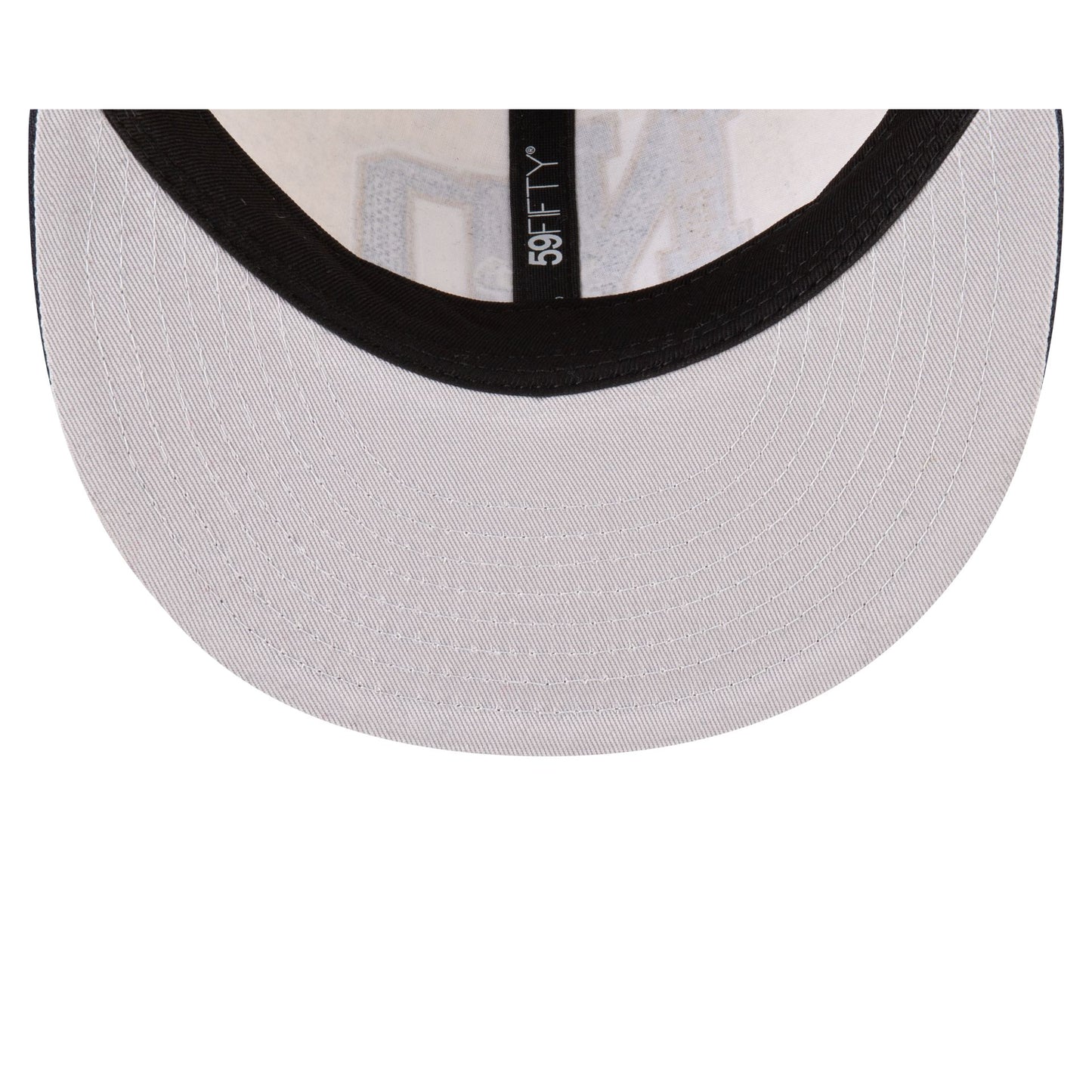 The Notre Dame Fighting Irish College Vault Wool Letterman Retro Crown 59FIFTY Fitted Cap features an embroidered loop Fighting Irish College Vault logo at the front panels and an additional logo at the rear. Additional details include a wool fabrication throughout the cap and a gray undervisor.