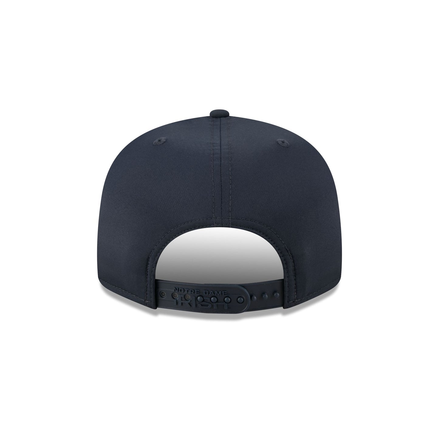 The Notre Dame Fighting Irish Hot Weather Split Panel 9FIFTY Snapback features a sewn-down silicone Fighting Irish logo patch at the front panels with a split-crown construction featuring water-repellent quill tech fabrication. Additional details include a team wordmark at a soft silicone snapback closure at the rear with a quick-dry cushioned sweatband to absorb moisture and team color silicone transfer details at the undervisor.