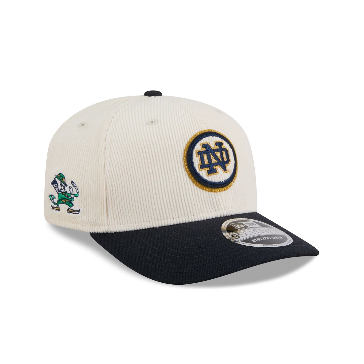The Notre Dame Fighting Irish Loyal Corduroy 9SEVENTY Stretch-Snap features an embroidered Fighting Irish logo at the front panels against a corduroy fabrication throughout the cap. Additional details include an alternate logo at the right-wear side with an adjustable stretch-snap closure at the rear.