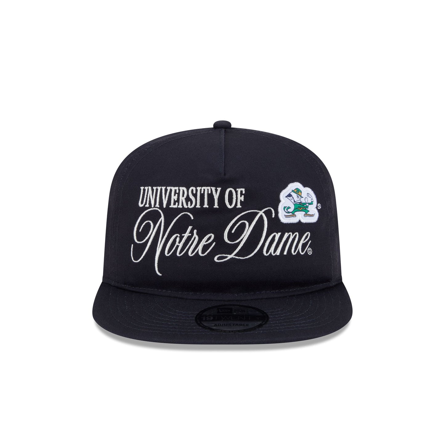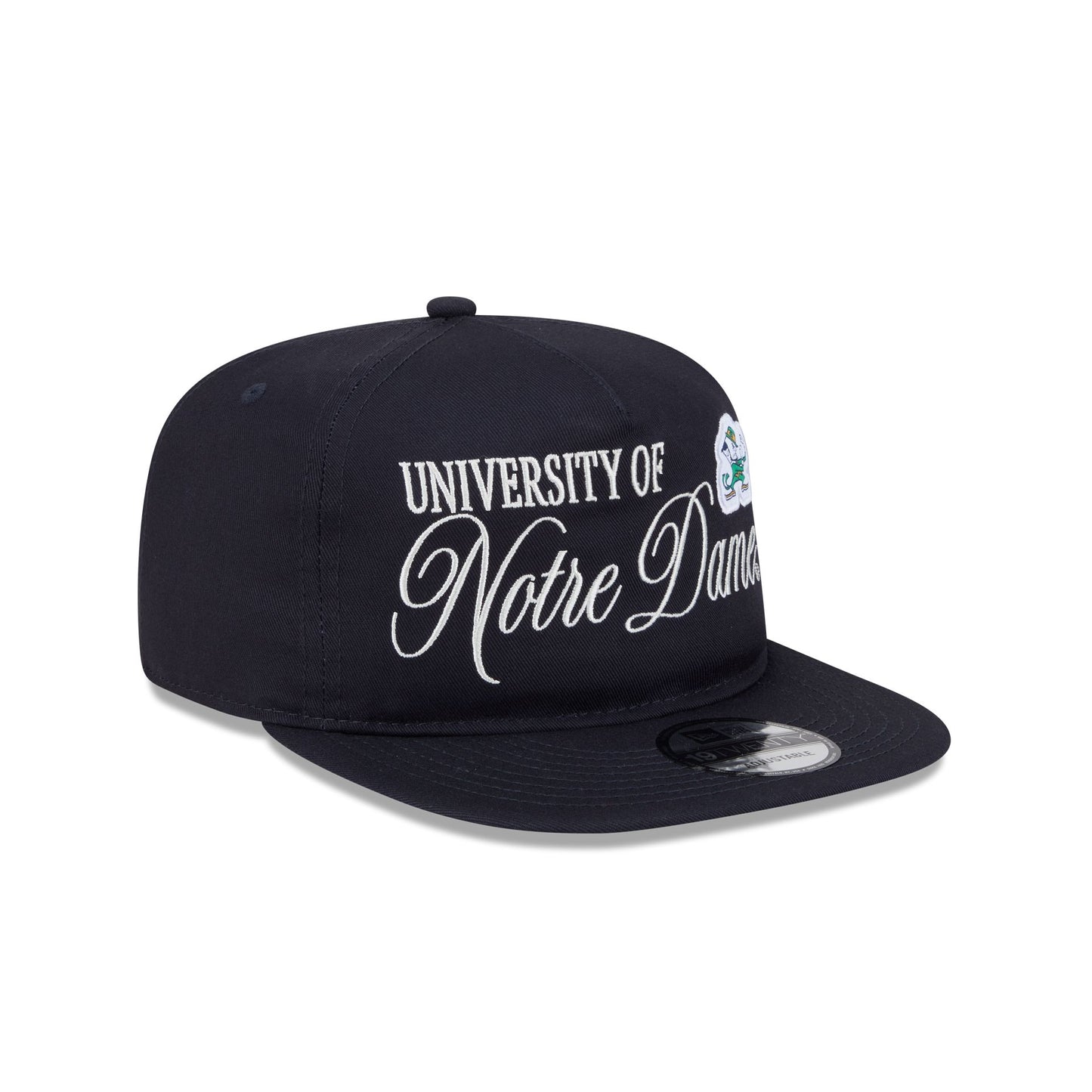 The Notre Dame Fighting Irish Script 19TWENTY Snapback features an embroidered Fighting Irish script and logo patch at the front panel with a snapback closure at the rear and a green undervisor.