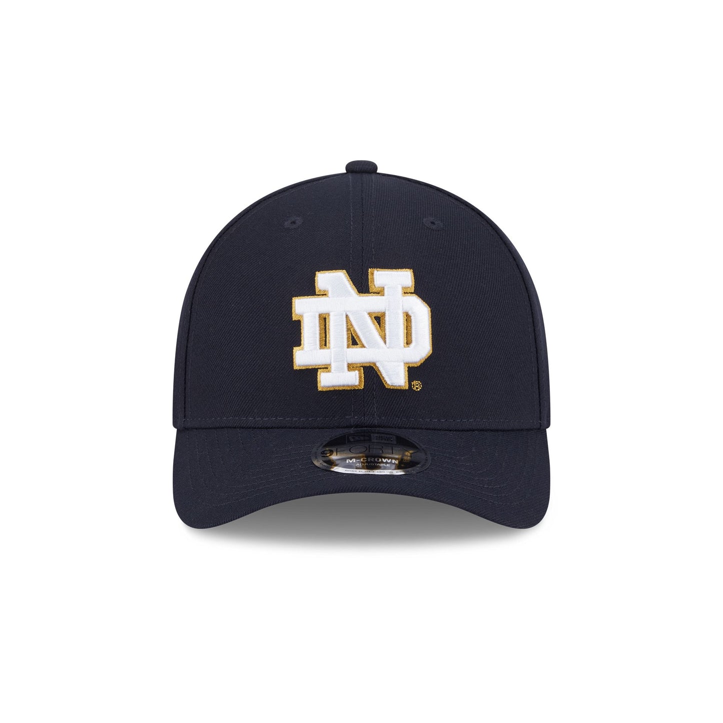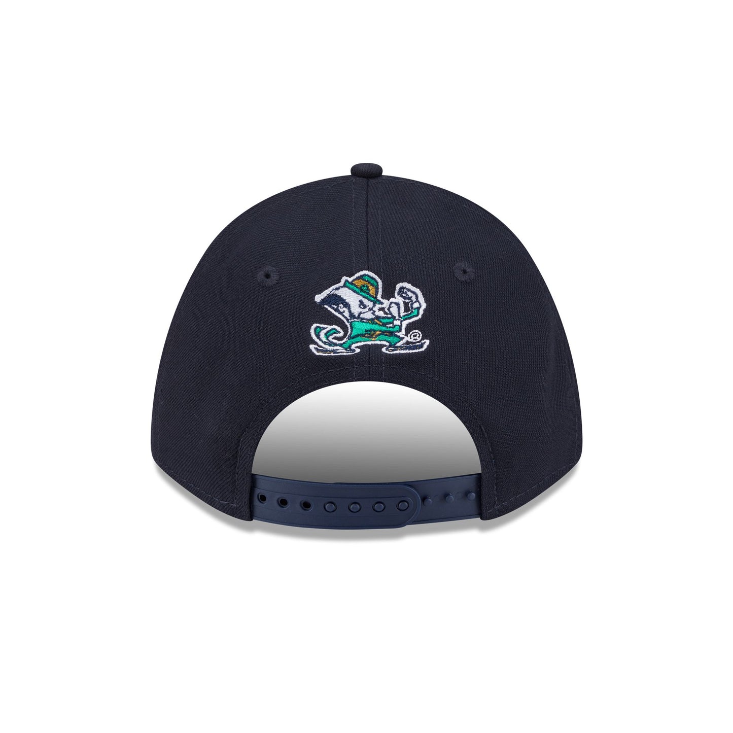 The Notre Dame Fighting Irish Team 9FORTY M-Crown Snapback features an embroidered Fighting Irish logo at the front panels with an alternate team logo above a snapback closure at the rear and a gray undervisor.