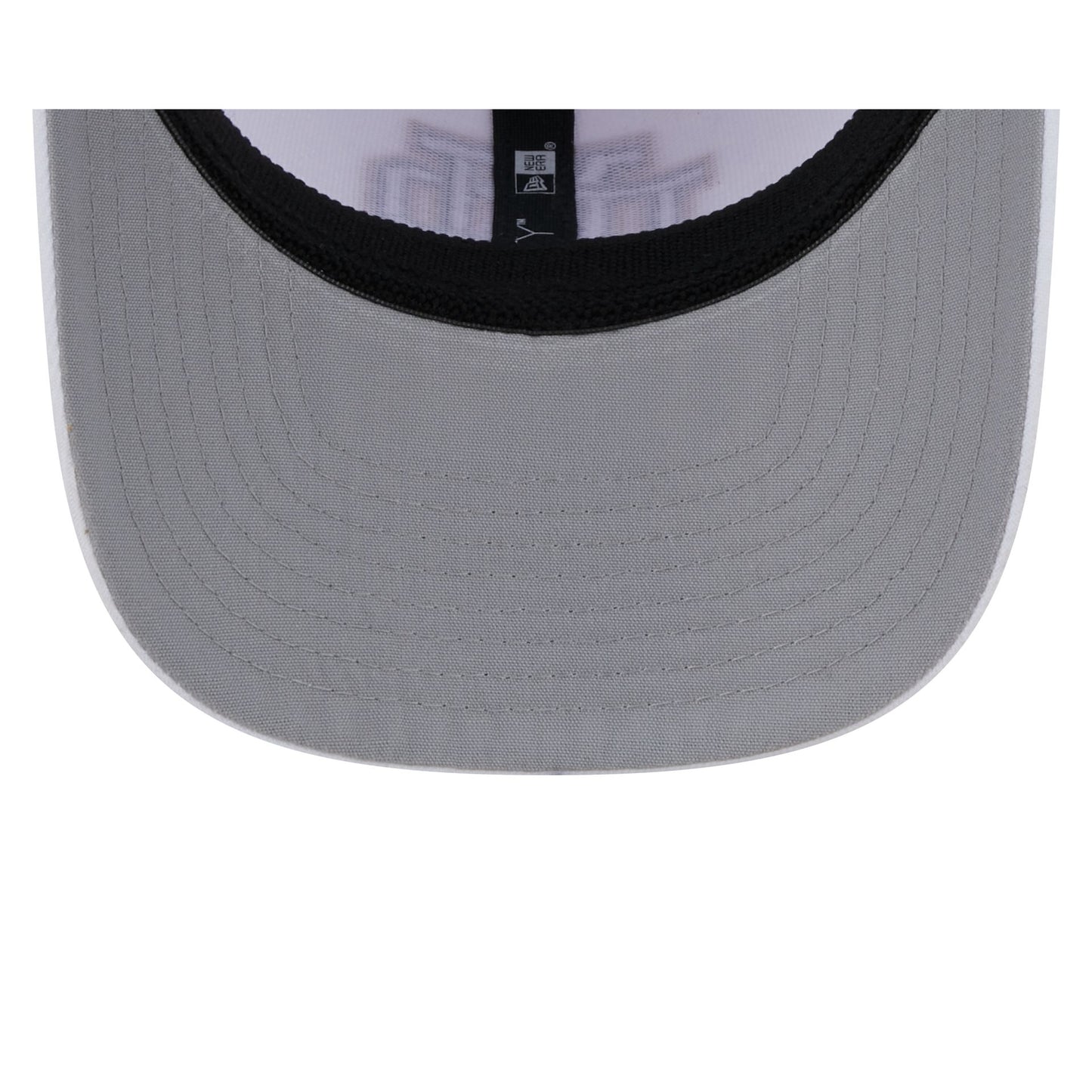 The Notre Dame Fighting Irish White 9SEVENTY Stretch-Snap features an embroidered Fighting Irish logo at the front panels with a matching tag on a snapback closure at the rear.