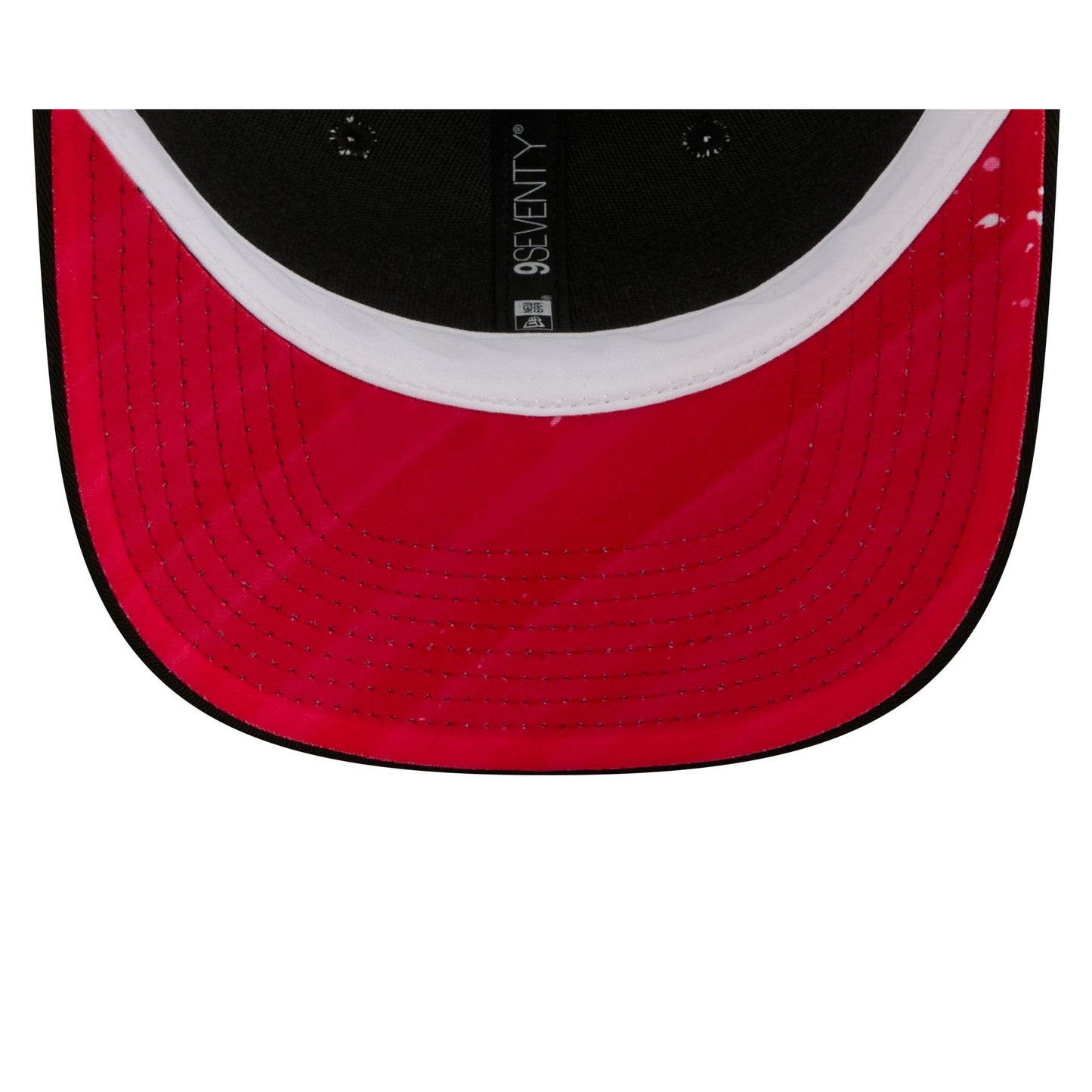 The Ohio State Buckeyes Collegiate Black 9SEVENTY Trucker features an embroidered Buckeyes logo at the front panels with an adjustable stretch-snap closure at the rear and red patterned undervisor.