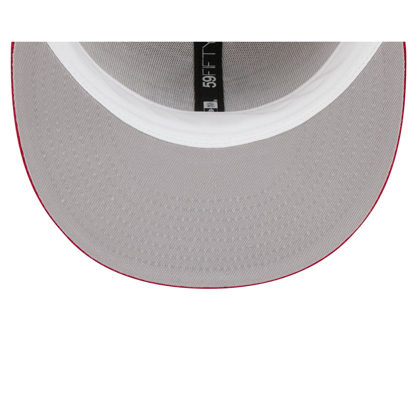 The Ohio State Buckeyes Collegiate Two-Tone Chrome 59FIFTY Fitted Cap features an embroidered Buckeyes logo at the front panels with an NCAA logo at the rear. Additional details include a 1999 NCAA Final Four patch at the right-wear side with a red visor and a gray undervisor.
