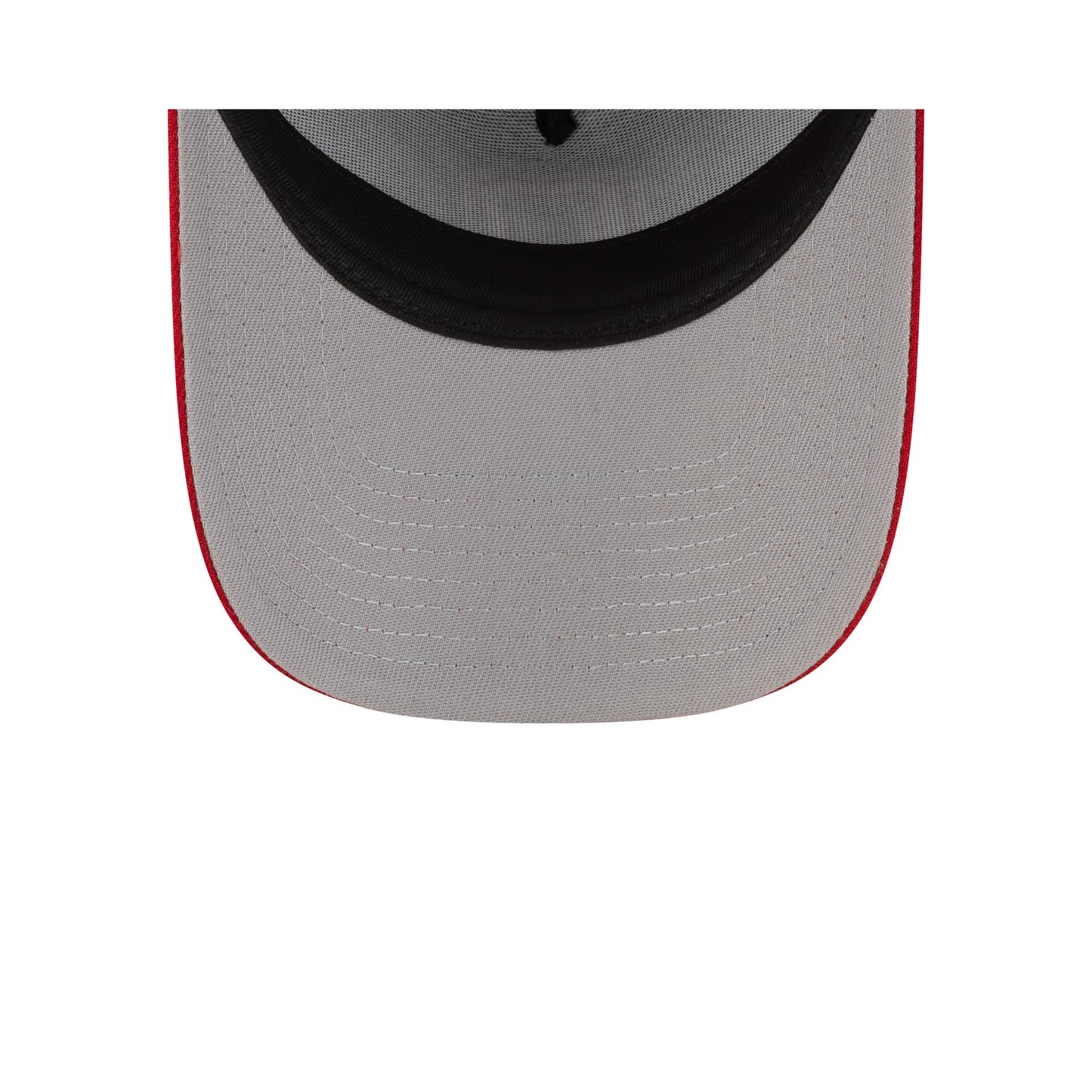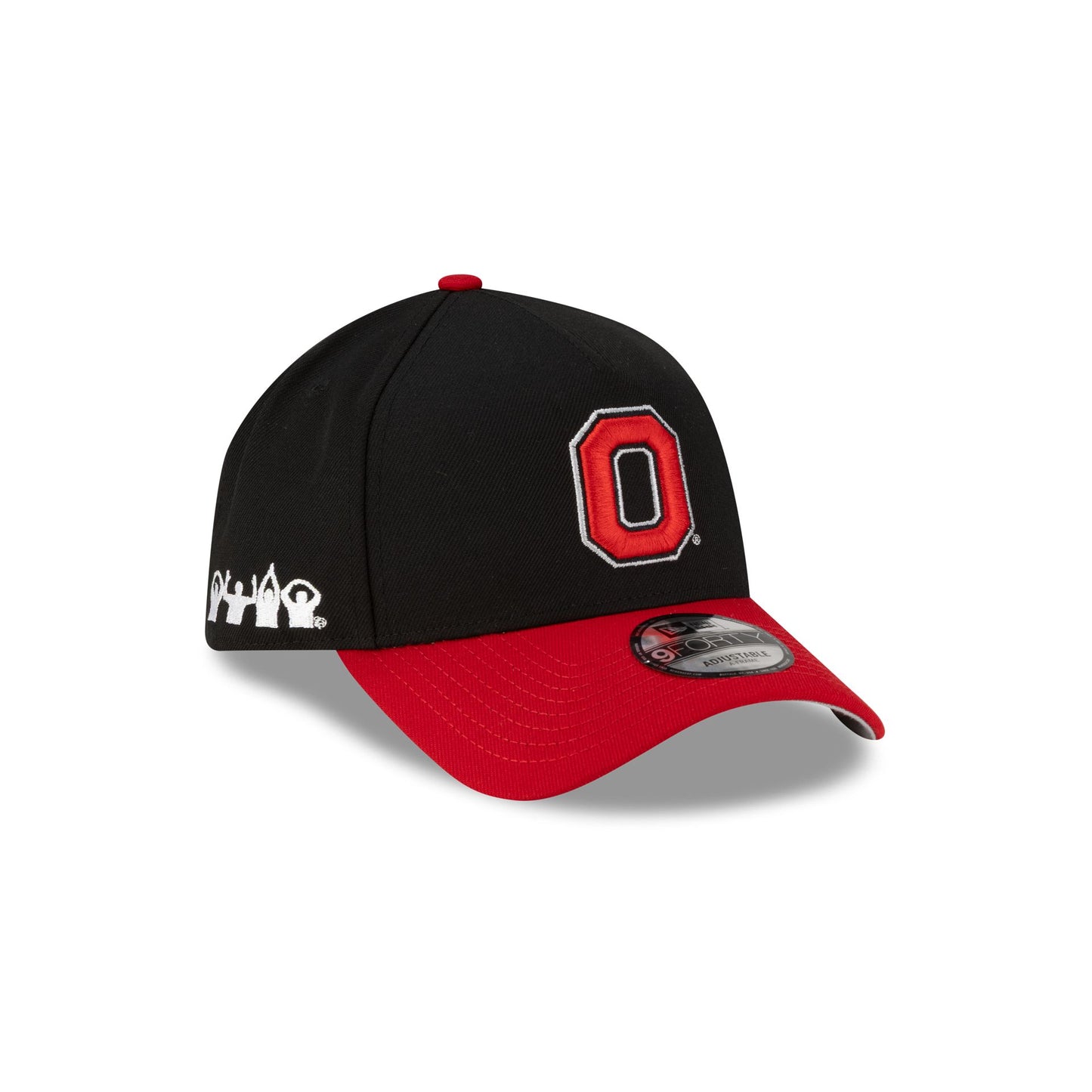 The Ohio State Buckeyes Hand Signs Sidepatch 9FORTY A-Frame Snapback features an embroidered Buckeyes logo at the front panels with the team's had sign at the right-wear side. Additional details include a snapback closure at the rear and a gray undervisor.