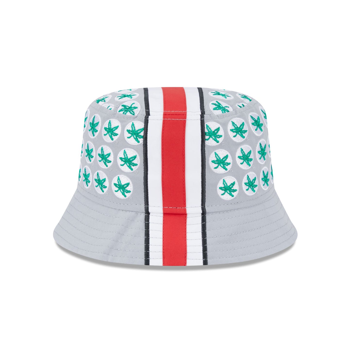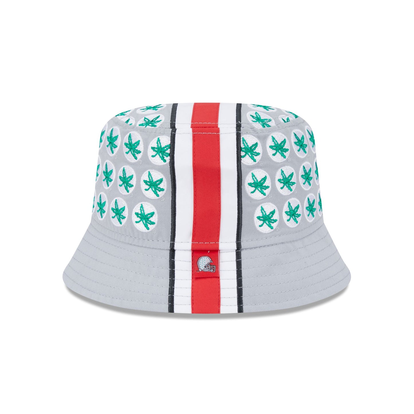 The Ohio State Buckeyes Helmet Bucket Hat features an embroidered Buckeyes helmet design throughout.
