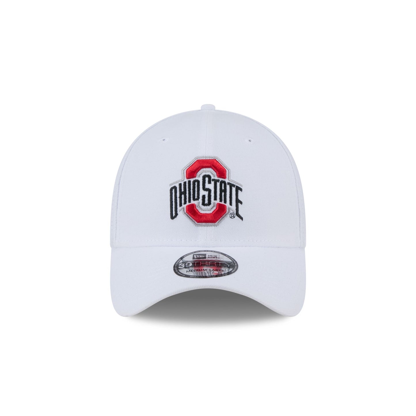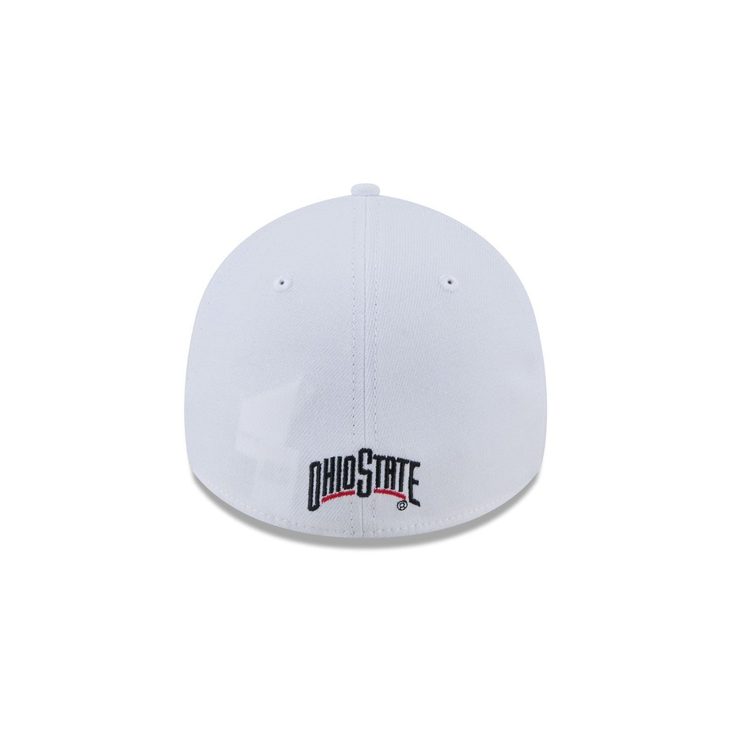 The Ohio State Buckeyes Optic White 39THIRTY Stretch Fit features an embroidered Buckeyes logo at the front panels with a team wordmark at the rear.
