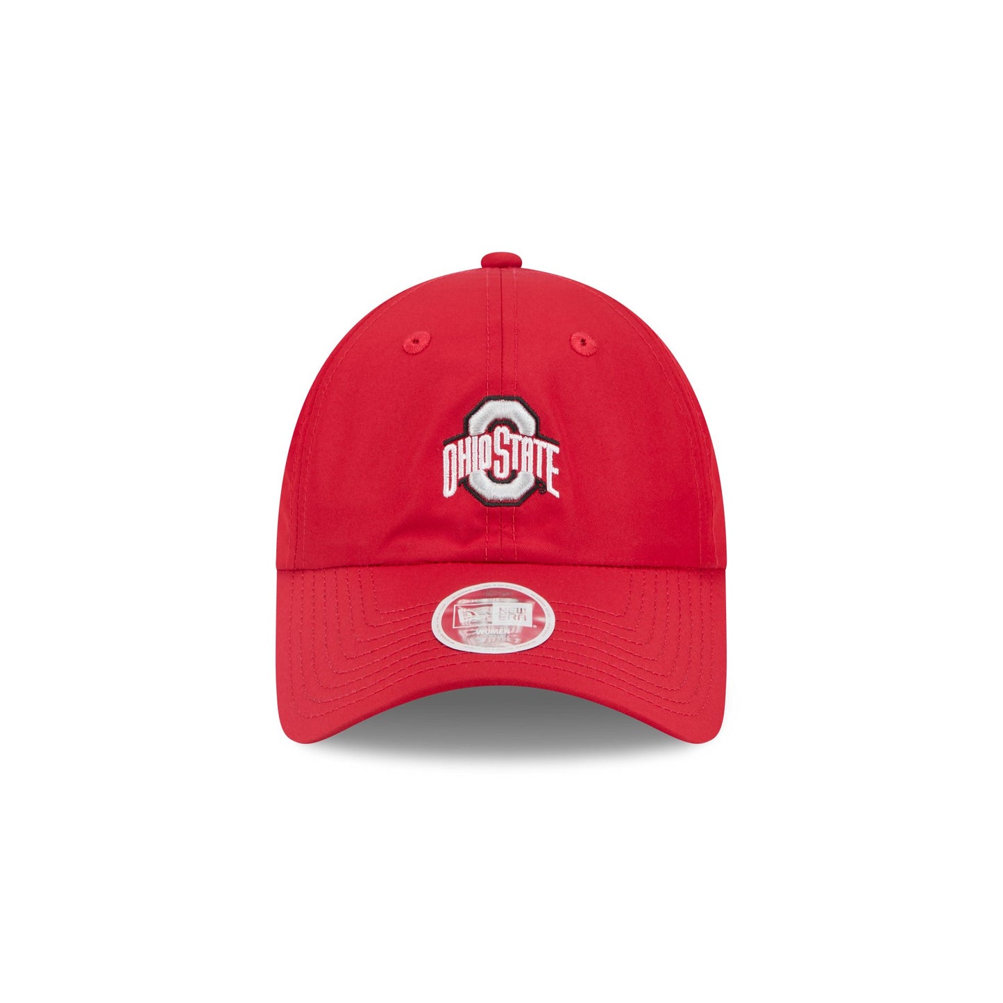 The Ohio State Buckeyes Women's Open Back Ponytail Cap features an embroidered Buckeyes logo at the front panels with elastic straps and an open panel at the rear to accommodate any hairstyle.