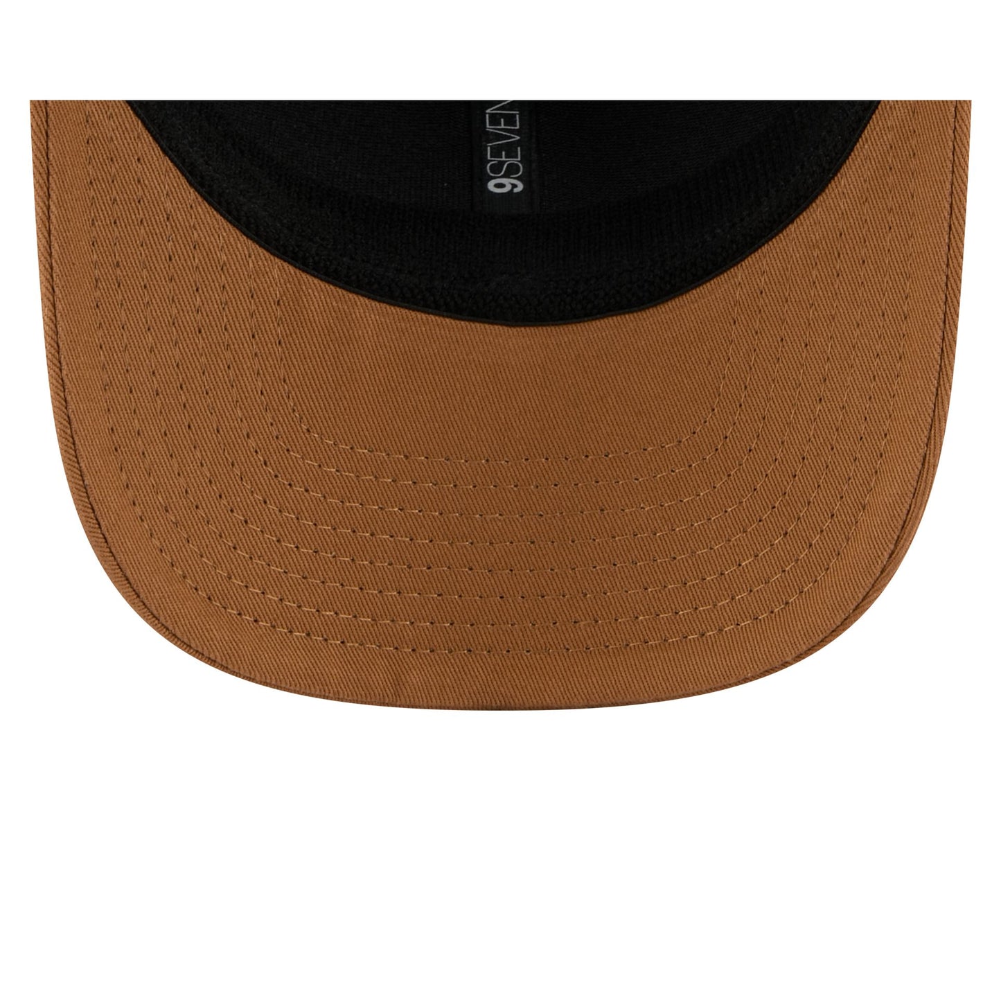 The Oilers Bronze 9SEVENTY Trucker features an embroidered Oilers Historic logo at the front panels with a matching woven team tag at a snapback closure at the rear.