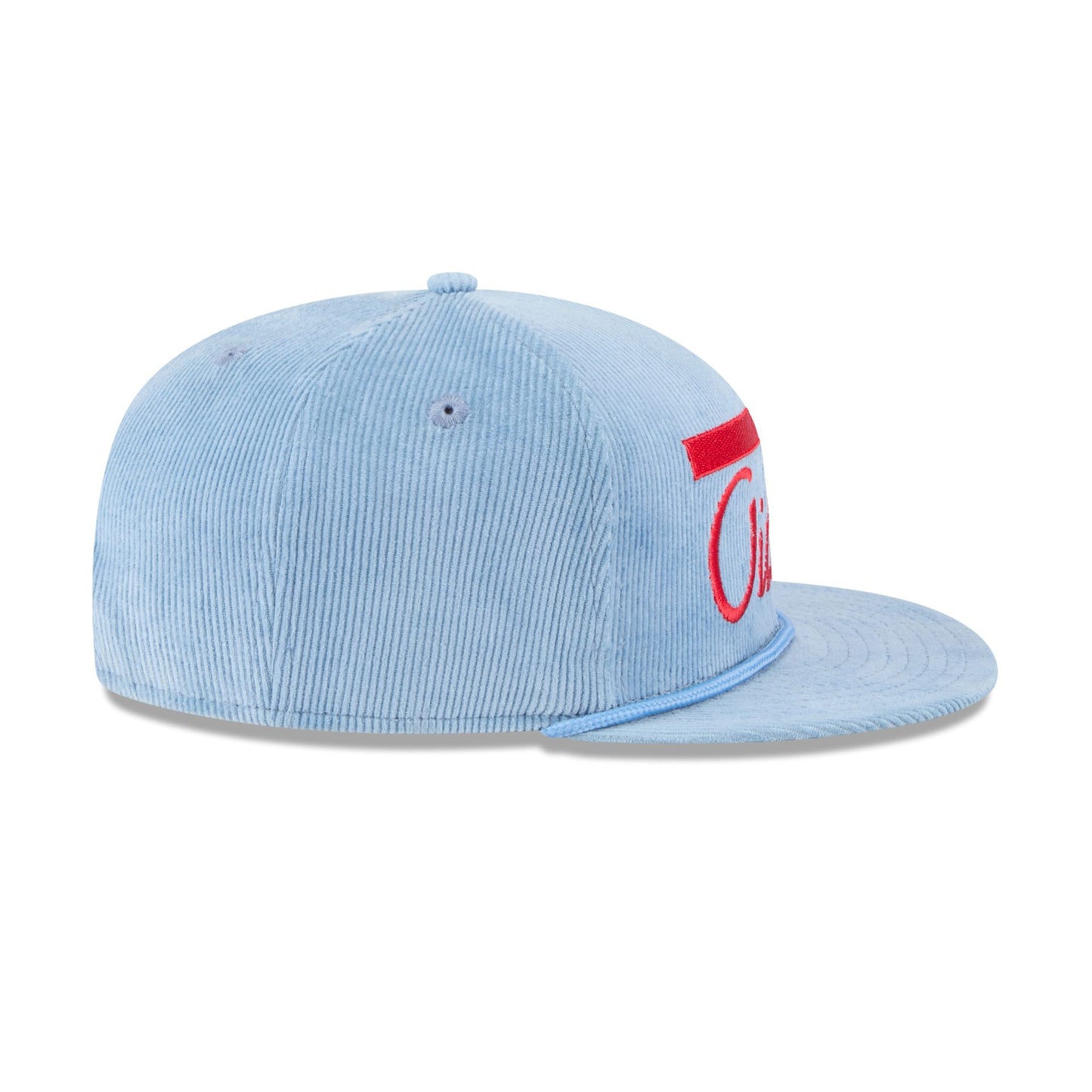 The Oilers Corduroy Rope 9FIFTY Snapback features an embroidered Oilers Historic graphic at the front panels with a corduroy fabrication throughout. Additional details include a rope at the visor, an adjustable snapback closure at the rear, and a gray undervisor.