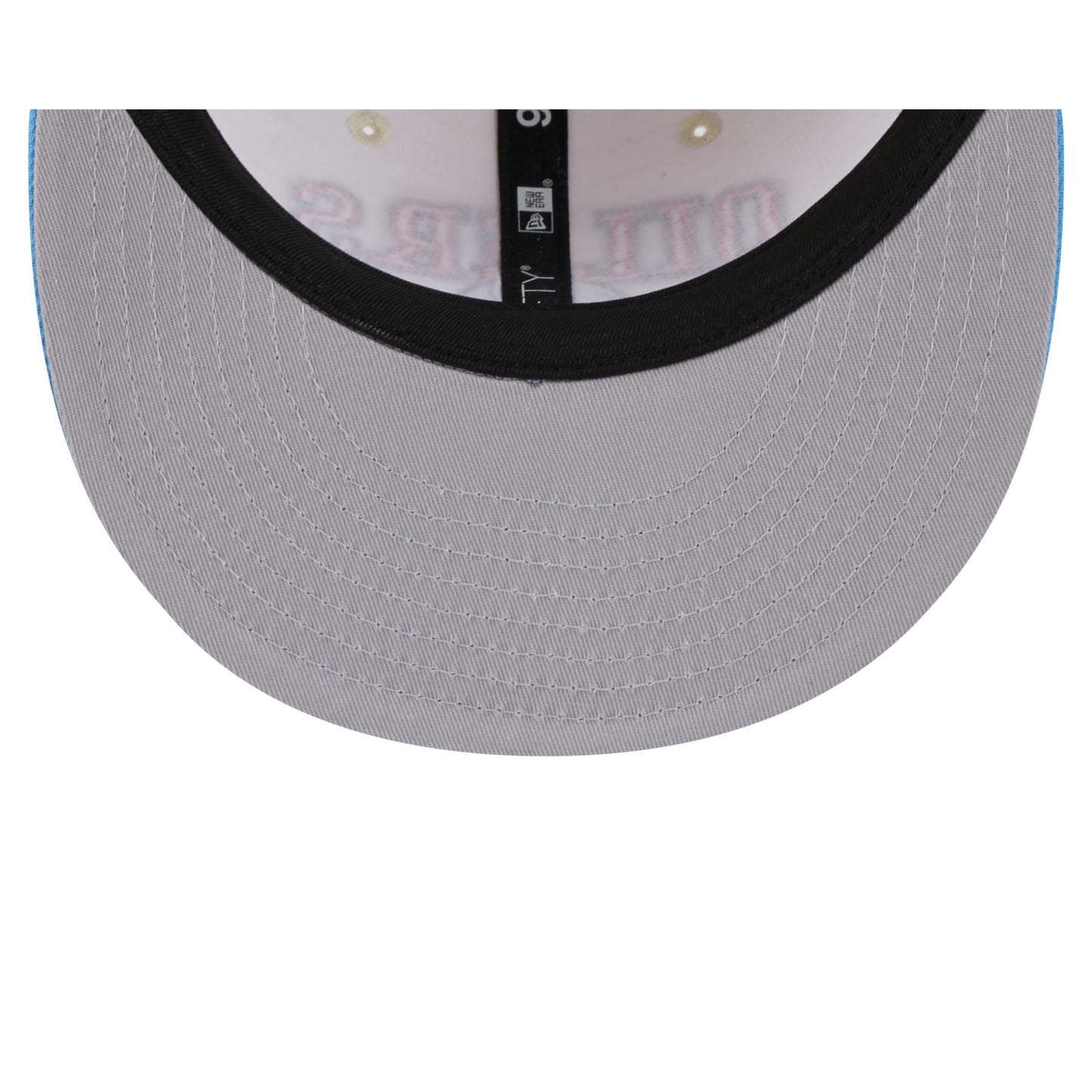 The Oilers Historic Helmet Retro Crown 9FIFTY Snapback features an embroidered Oilers Historic helmet and wordmark at the front panels with a snapback closure at the rear and a gray undervisor.