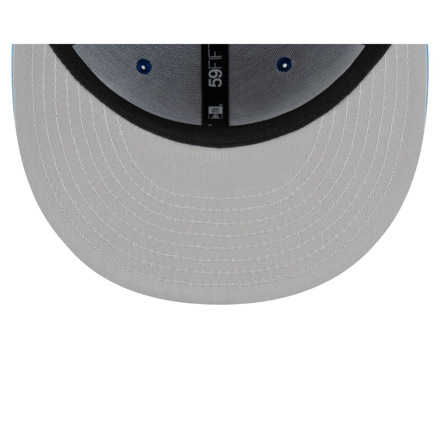 The Oklahoma City Comets Road 59FIFTY Fitted Cap features an embroidered Comets logo at the front panels with a matching MiLB Batterman logo at the rear and a gray undervisor.