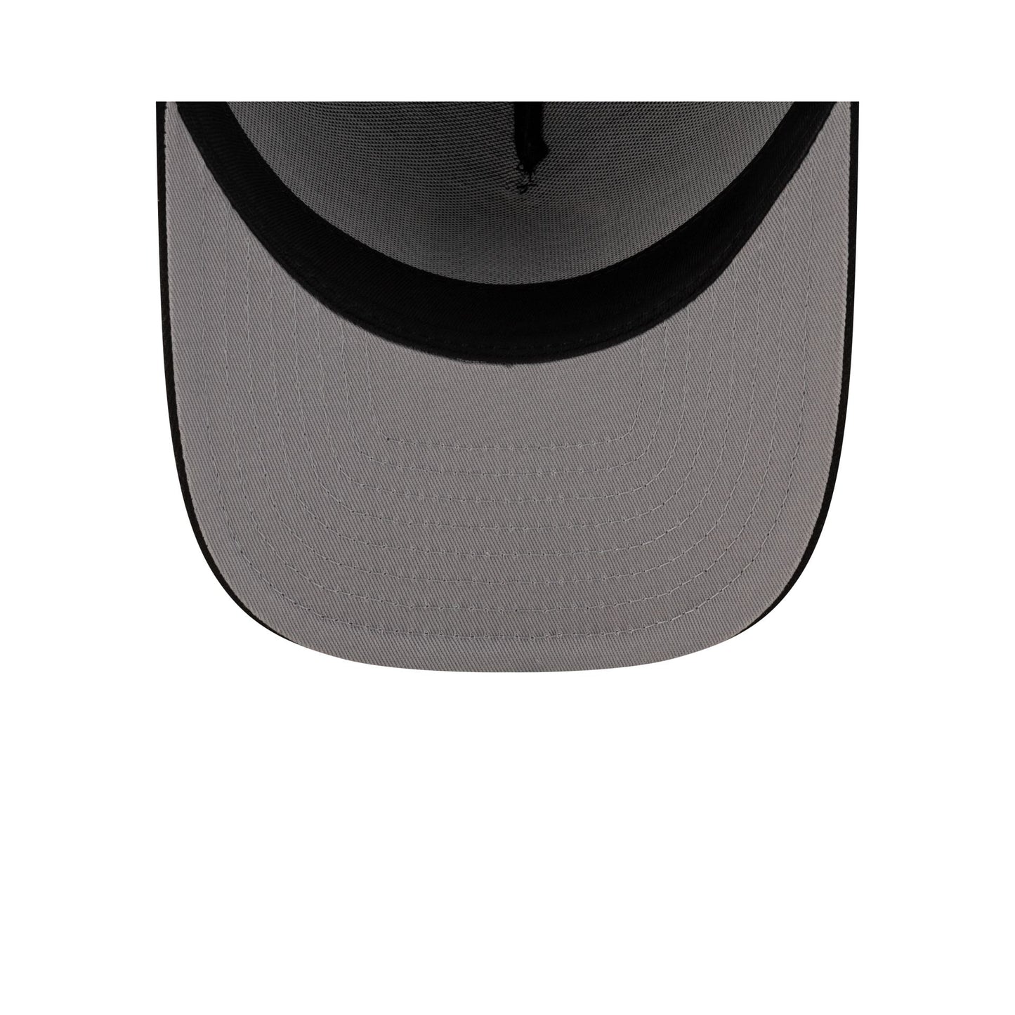 The Oklahoma City Thunder 2025 NBA Champions Locker Room 9FIFTY A-Frame Snapback features an embroidered Thunder logo and 2025 NBA Champions wordmark at the front panels with a Larry O'Brien Trophy patch at the right-wear side. Additional details include the NBA Logoman above an adjustable snapback closure at the rear and a gray undervisor.