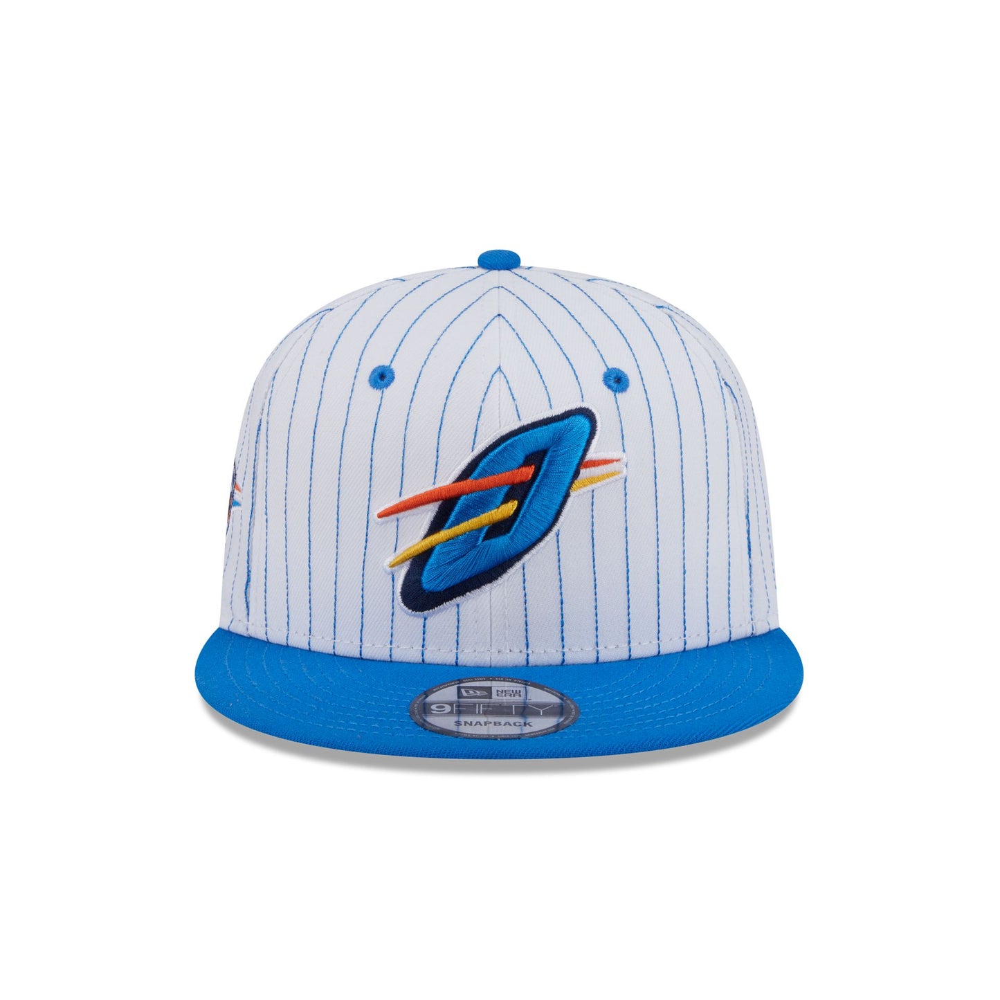 The Oklahoma City Thunder Deceptor 9FIFTY Snapback features an embroidered Thunder deceptive logo at the front panels with a team logo at the right-wear side. Additional details include a snapback closure at the rear and a gray undervisor.