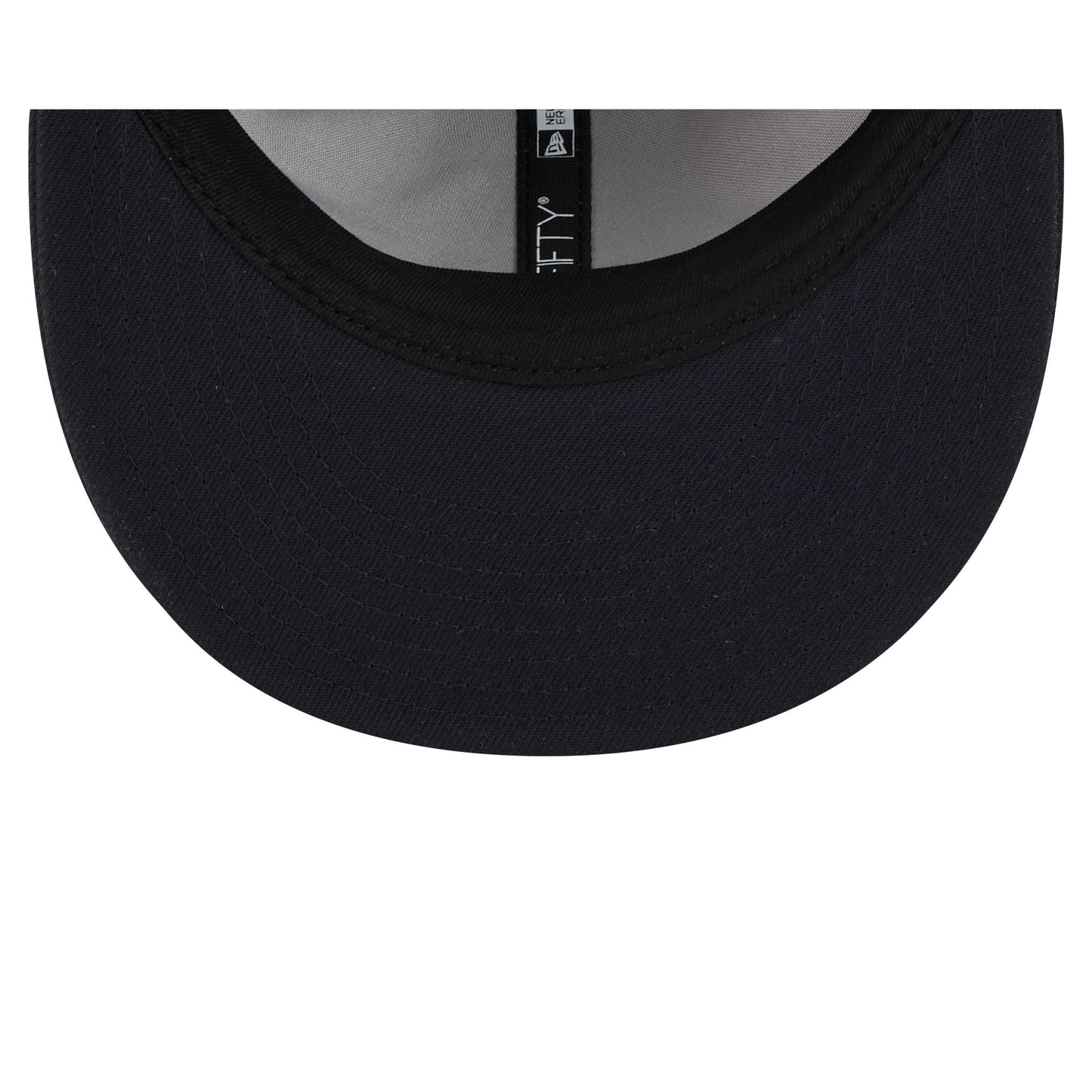 The Oklahoma City Thunder Grunge Plaid Retro Crown 9FIFTY Adjustable Cap features an embroidered Thunder logo at the front panels with an adjustable leather strap closure at the rear and a navy undervisor.