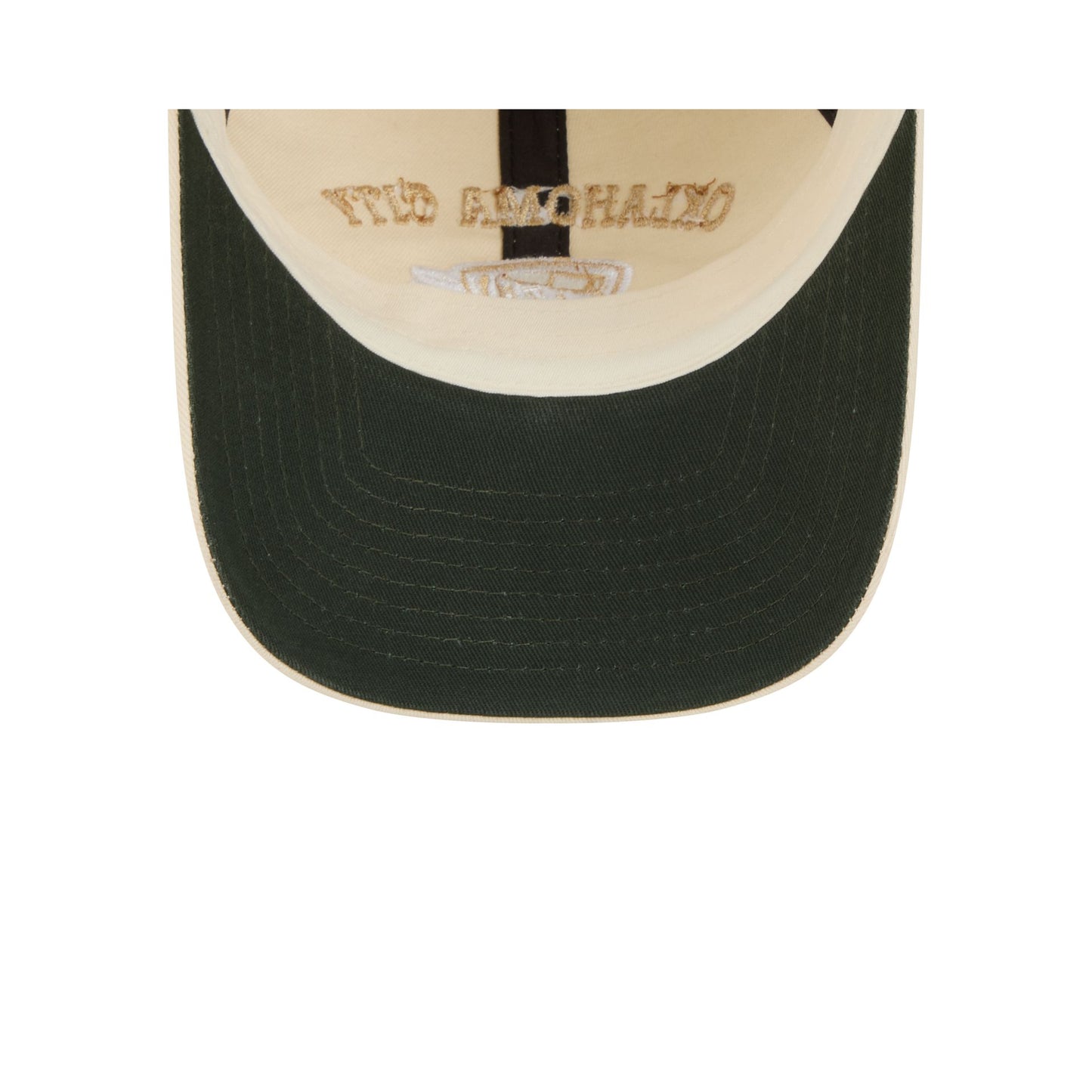 The Oklahoma City Thunder Team Logo Cream Casual Classic Adjustable Cap features an embroidered Thunder wordmark and logo at the front panels with an adjustable D-Ring closure at the rear.