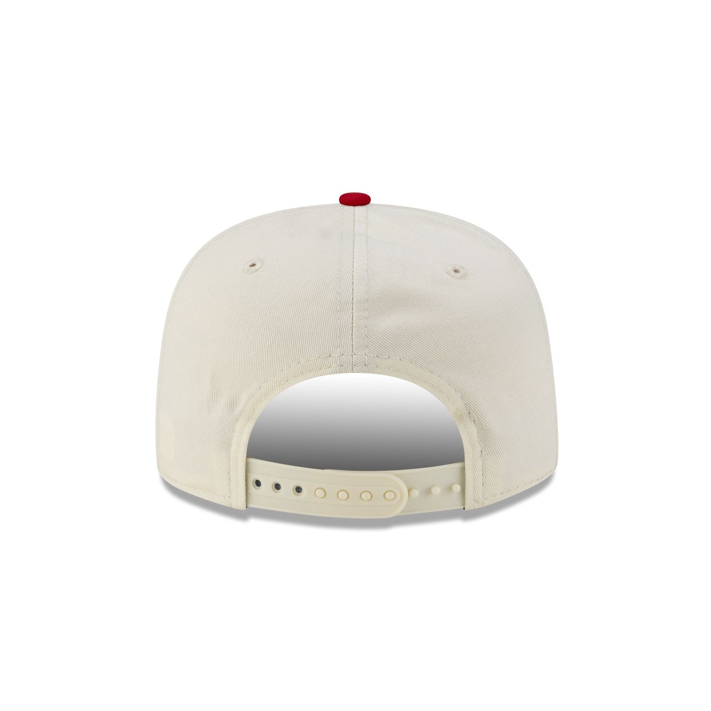 The Olympic Heritage Los Angeles 1984 Olympic Games Stars Chrome White Red Golfer features an embroidered LA84 Stars logo at the front panels with a rope at a red visor and an adjustable snapback closure at the rear.