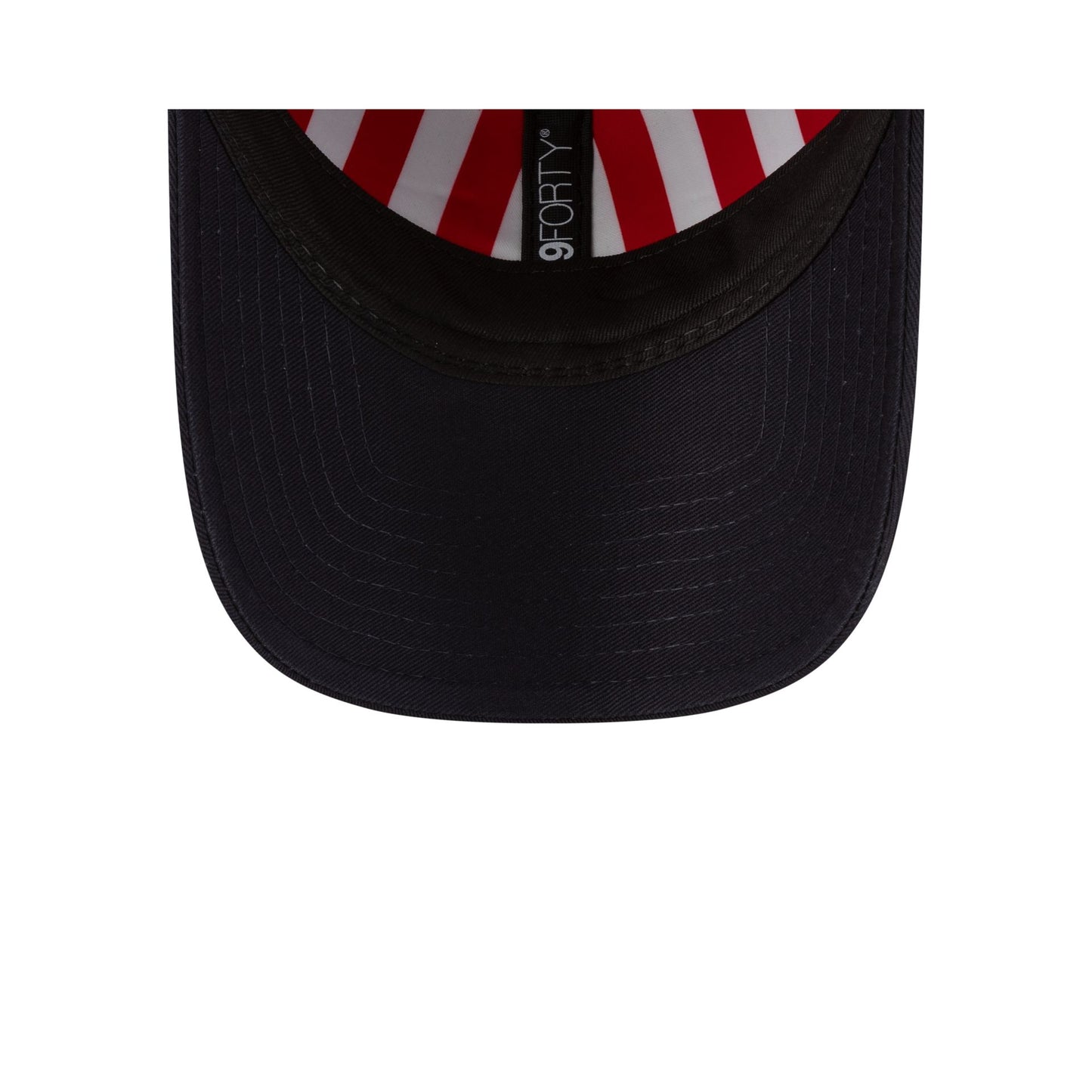 The One Piece Buggy 9FORTY Adjustable Cap features an embroidered One Piece Buggy skull at the front panels with a One Piece logo at the right-wear side and character items throughout. Additional details include an adjustable D-Ring closure at the rear.