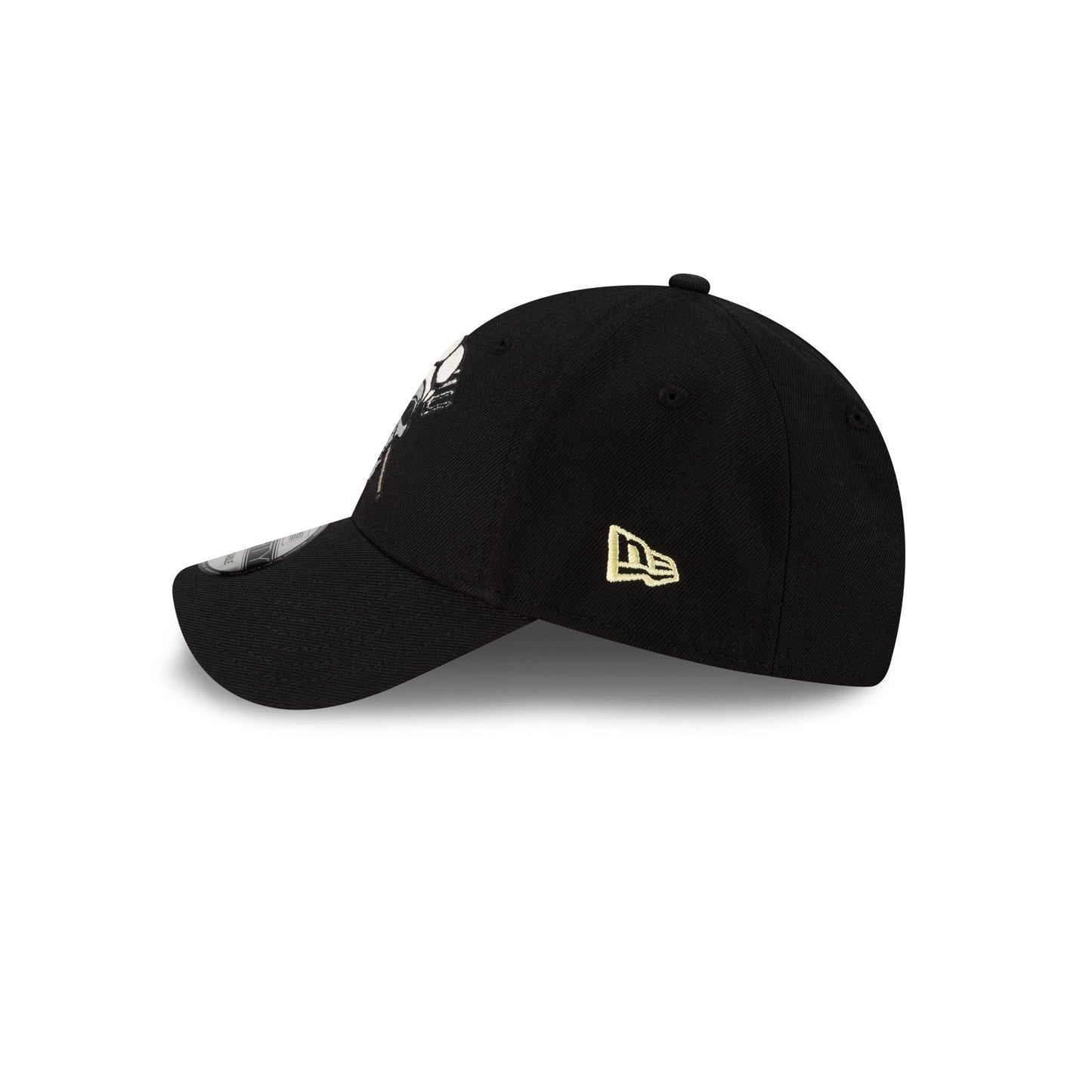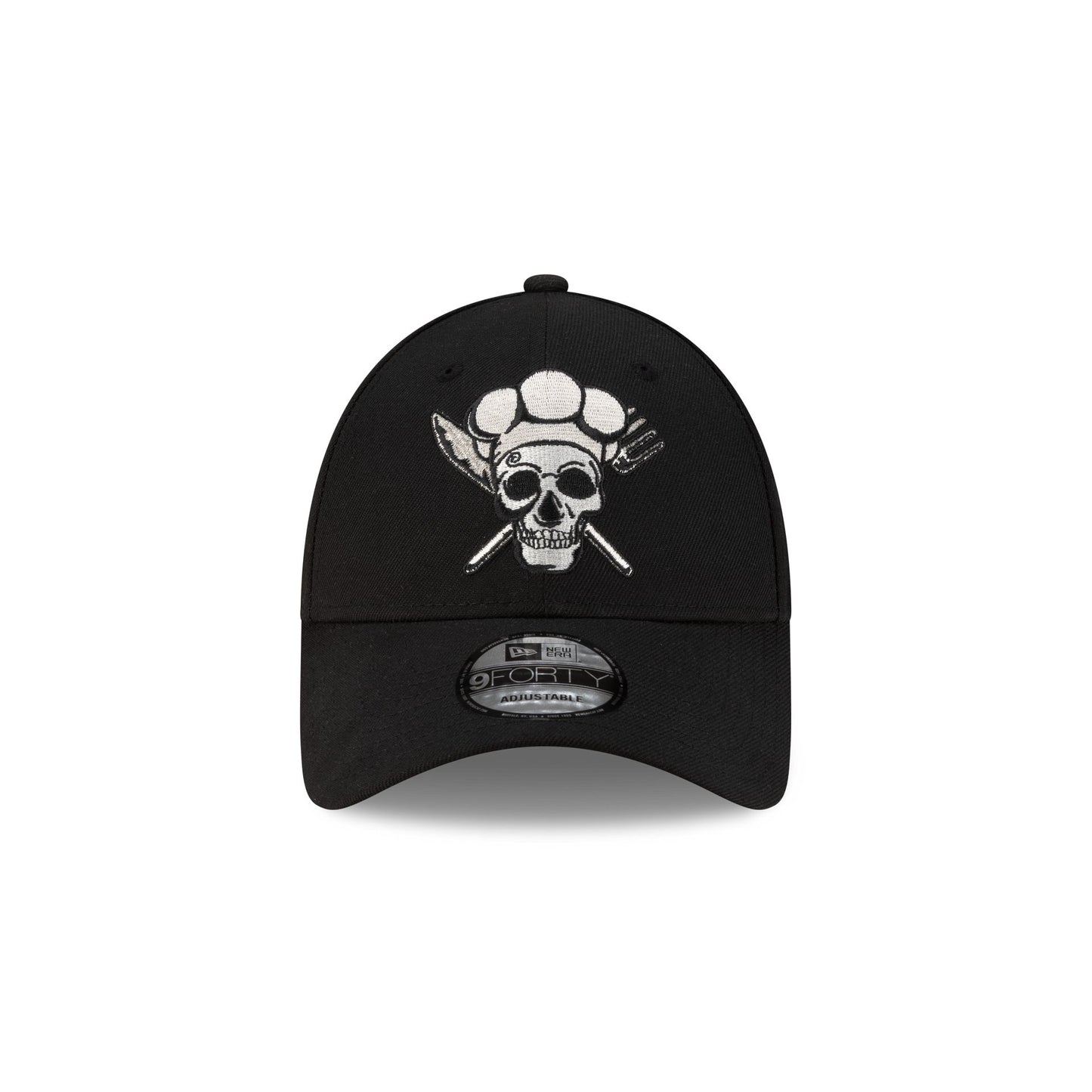The One Piece Sanji 9FORTY Adjustable Cap features an embroidered One Piece Sanji skull at the front panels with a One Piece logo at the right-wear side and character items throughout. Additional details include an adjustable D-Ring closure at the rear.