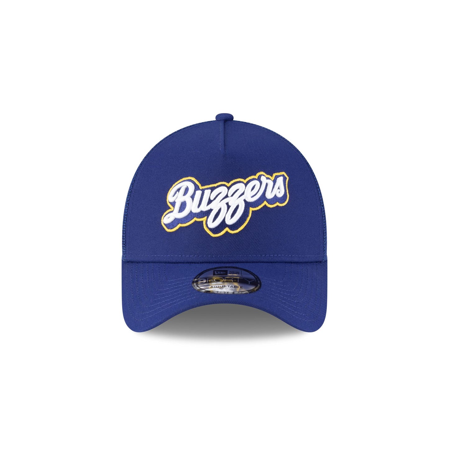 The Ontario Tower Buzzers 9FORTY A-Frame Trucker features an embroidered Tower Buzzers wordmark at the front panel with an adjustable snapback closure at the rear.