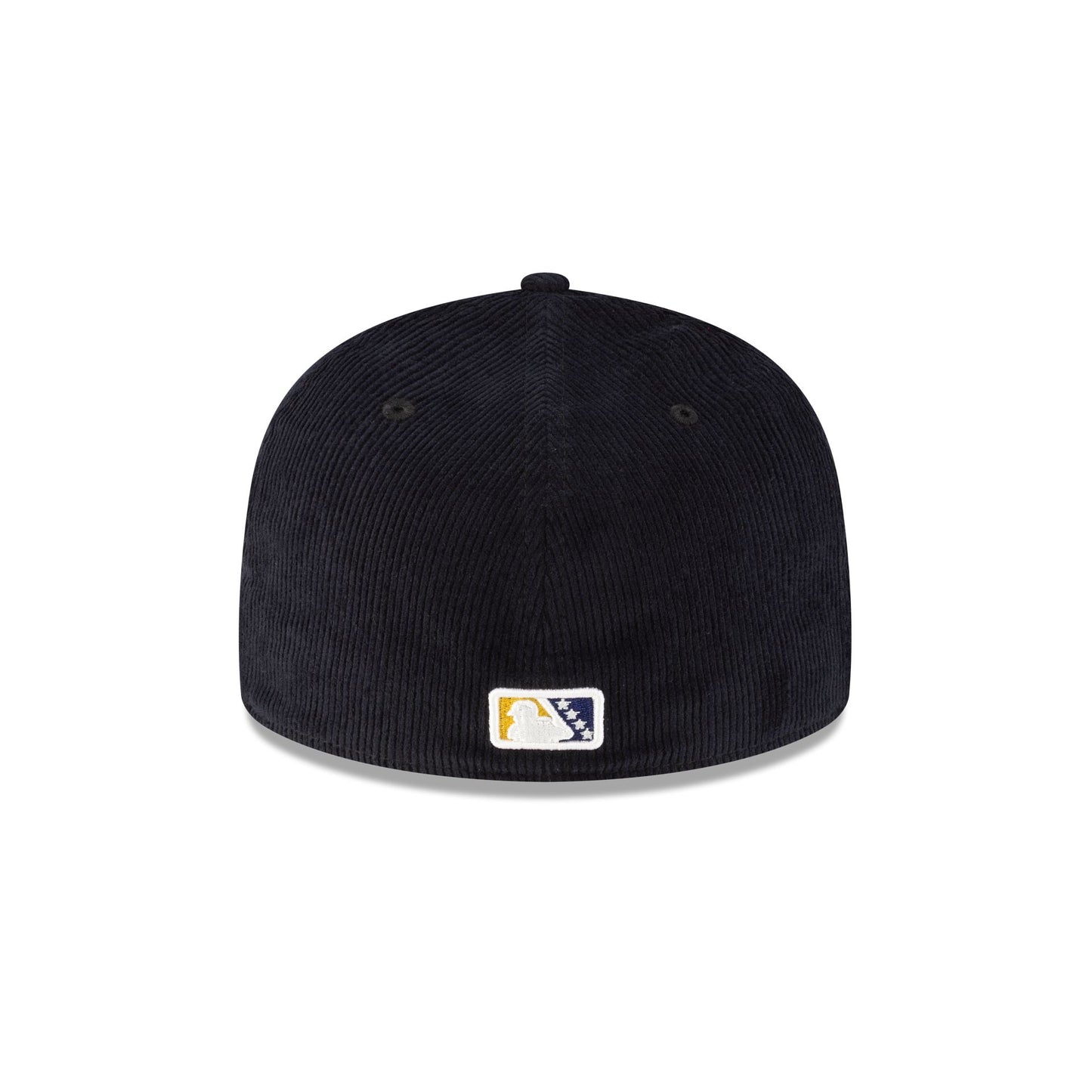 The Ontario Tower Buzzers Corduroy 59FIFTY Fitted features an embroidered Tower Buzzers mascot at the front panels with a matching MiLB Batterman logo at the rear and a green undervisor.