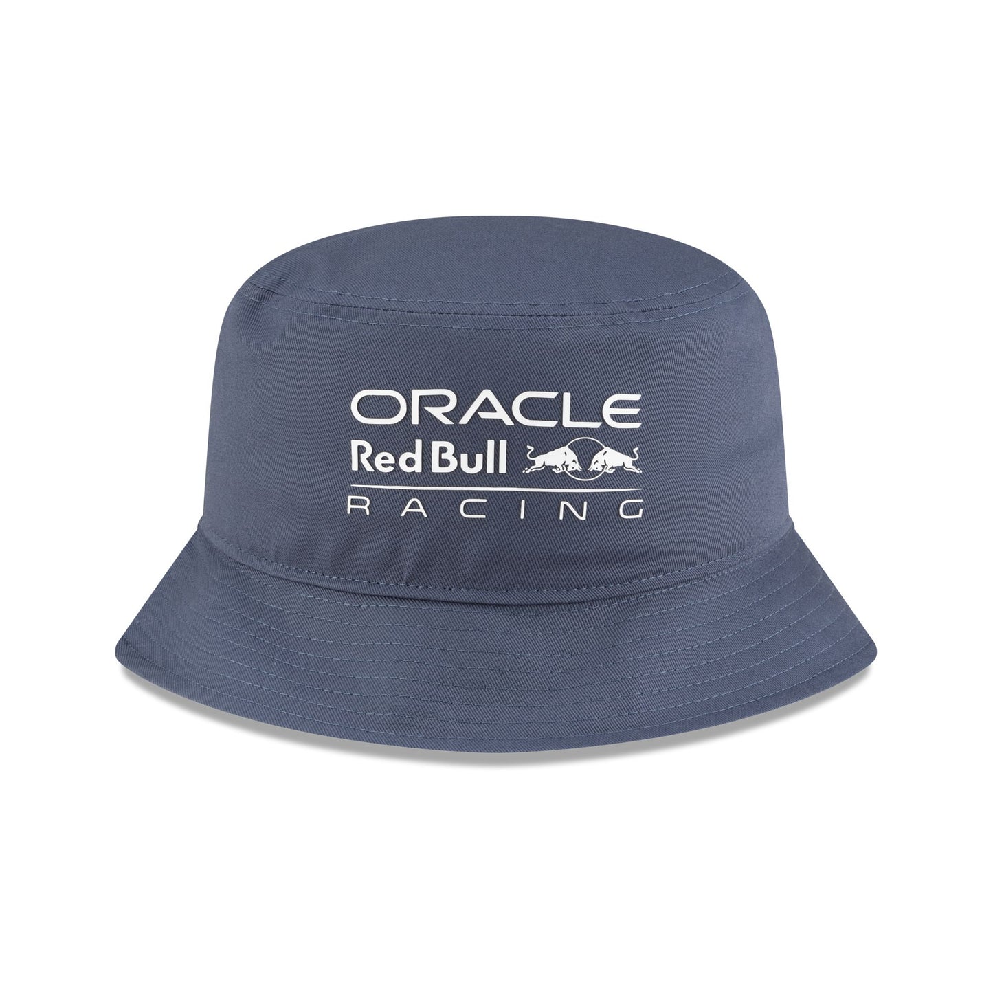 The Oracle Red Bull Racing Calming Blue Tapered Bucket Hat features a screen-printed Oracle Red Bull Racing logo at the front.