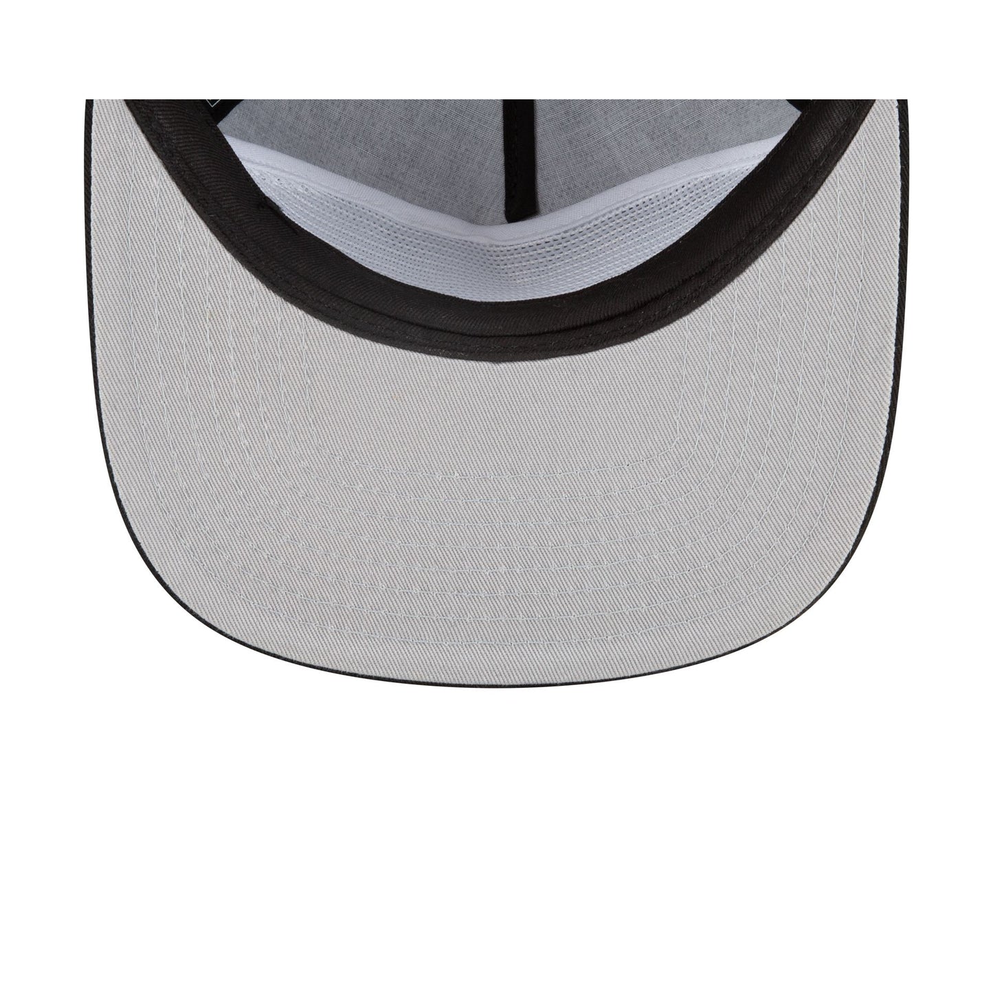 The Oracle Red Bull Racing Essential Black Script Golfer features a black embroidered Oracle Red Bull Racing wordmark at the front panels with a gray undervisor, and a snapback closure at the rear.