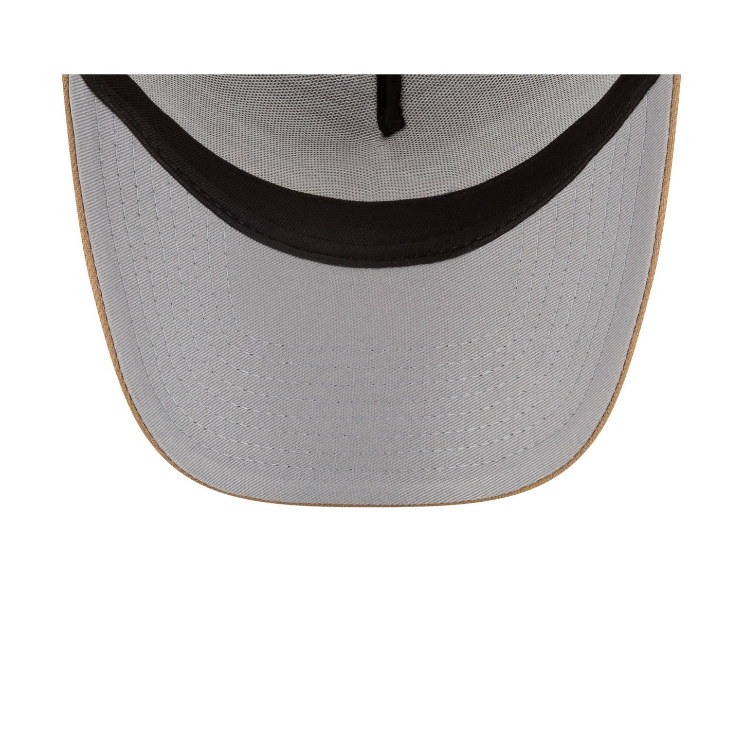 The Oracle Red Bull Racing Essential Khaki 9FORTY A-Frame Trucker features an embroidered Oracle Red Bull Racing wordmark at the front panels with a khaki visor, a gray undervisor, and a snapback closure at the rear.