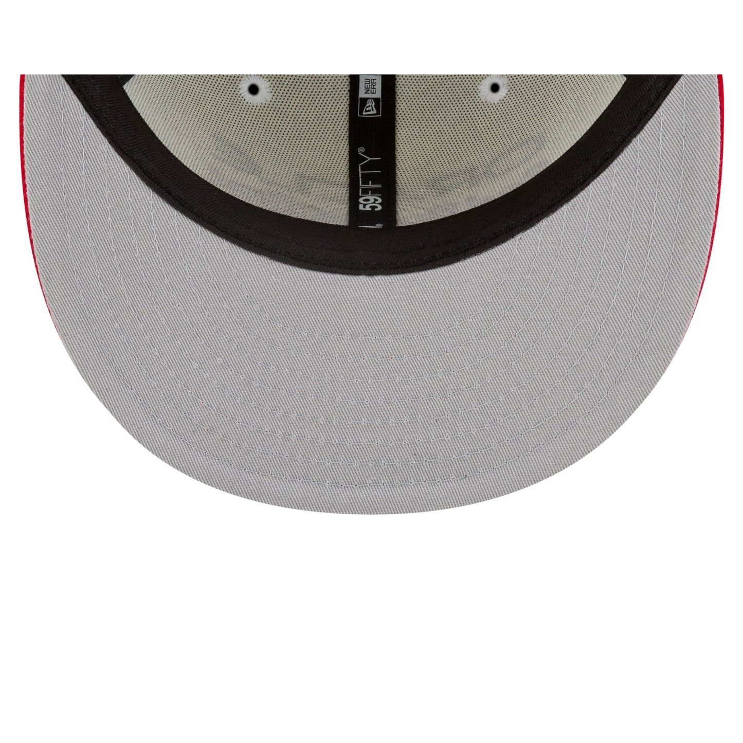 The Oracle Red Bull Racing Essential White 59FIFTY Fitted Cap features an embroidered Oracle Red Bull Racing wordmark at the front panels with a red visor and a gray undervisor.